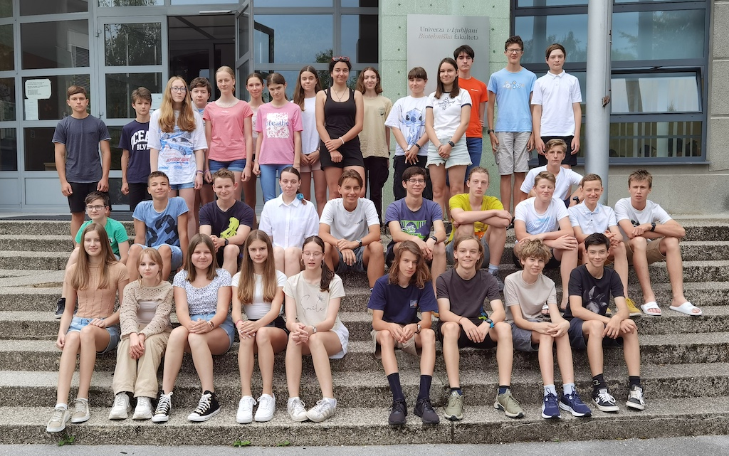 V torek, 27. junija, smo na Oddelku za biologijo Biotehniške fakultete UL opravili še zadnja predavanja iz fizike, kemije in biologije na prvih letošnjih pripravah na 20. IJSO. V predavalnici B5 je pri zmernih atmosferskih pogojih sedelo 35 učenk in učencev, prek zooma pa je predavanja poslušalo še skoraj 20 učenk in učencev. Za spomin smo se fotografirali (za zaslonski posnetek z zooma jih je le polovica vključila kamero).