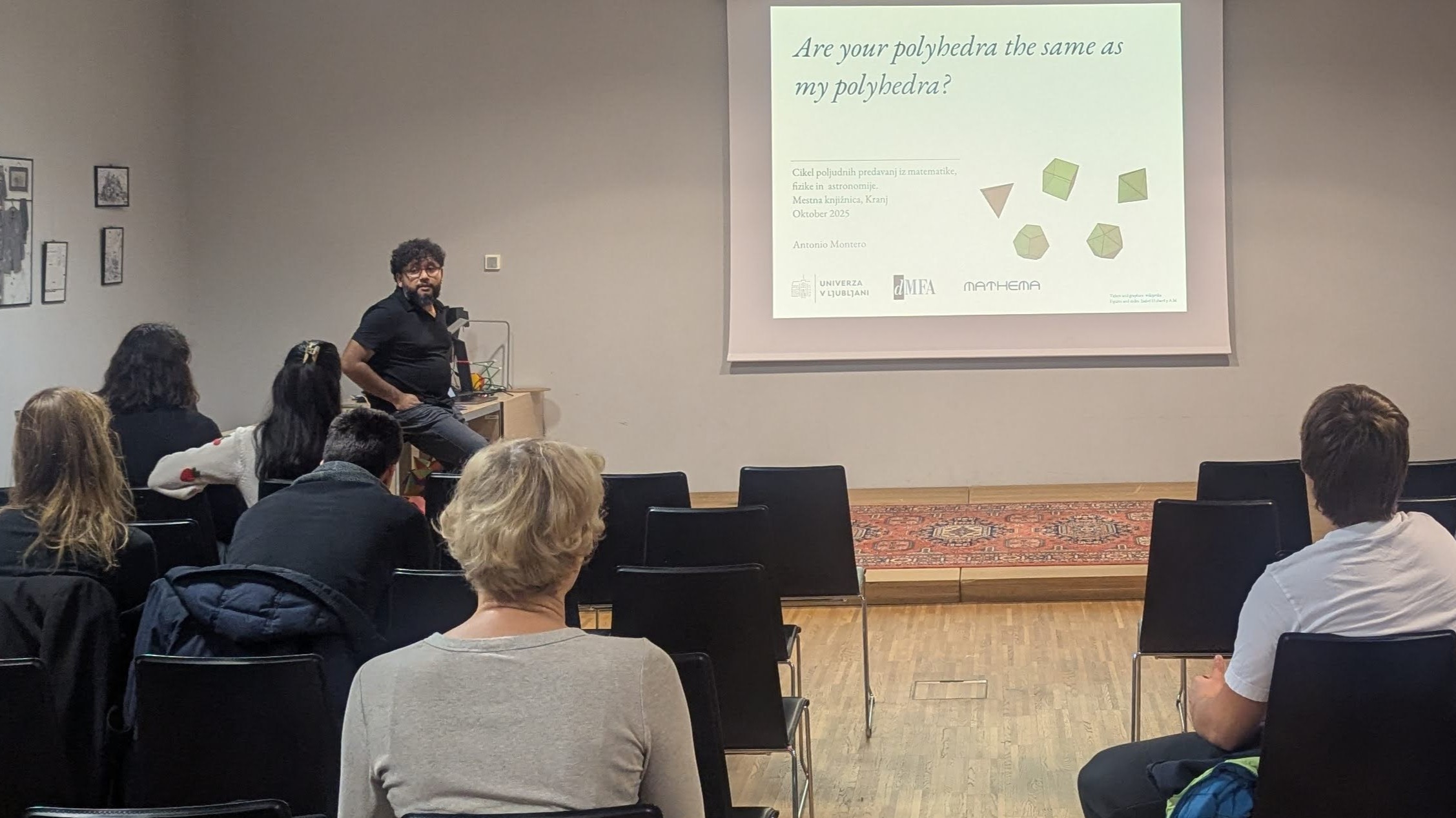 Dr. Antonio Montero je matematik in podoktorski raziskovalec na Univerzi v Ljubljani. Doktorat je opravil na Nacionalni avtonomni univerzi Mehike v Mehiki, nato je kot podoktorski raziskovalec deloval na Univerzi v Yorku (Toronto, Kanada) in na Inštitutu za matematiko Nacionalne avtonomne univerze Mehike (Ciudad de México, Mehika). Leta 2022 se je pridružil Univerzi v Ljubljani, kjer od takrat dela na Fakulteti za matematiko in fiziko, nedavno pa tudi na Pedagoški fakulteti. Njegovo raziskovalno delo je osredotočeno na simetrije matematičnih struktur, kot so poligoni, poliedri in grafi. Poleg raziskovanja poučuje predmete iz diskretne matematike, geometrije in algebre ter z veseljem deli svojo strast do matematike.