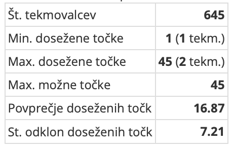 Uradni rezultati šolskega tekmovanja