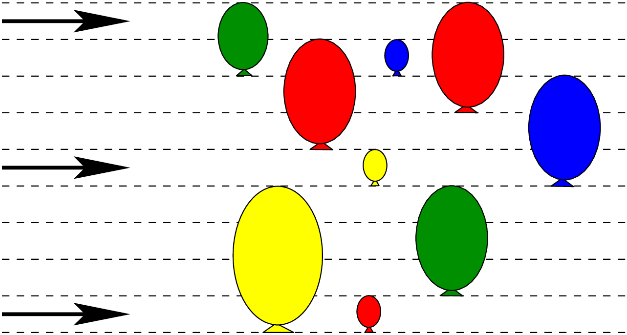Ko puščica zadene balon, balon poči in puščica leti dalje v isti smeri. Koliko balonov bodo zadele vse 3 leteče puščice skupaj?