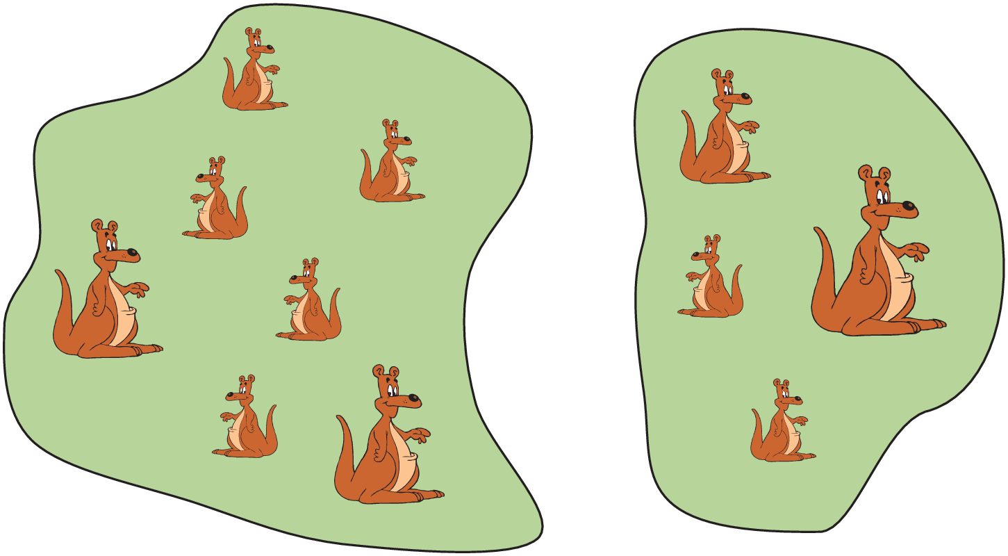 V mestu Guru sta 2 parka. V večjem parku prebiva več kengurujev kot v manjšem (glej sliko).