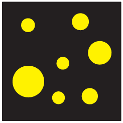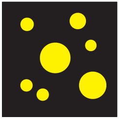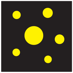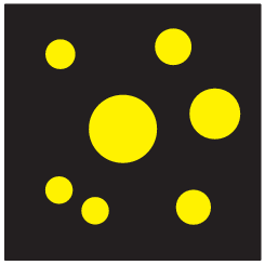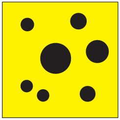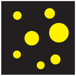 Petra je kroge na listu papirja pobarvala s temno barvo (glej sliko). Nato je Peter kroge prebarval s svetlo barvo, preostanek lista pa s temno barvo. Katera slika je Petrova?