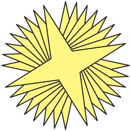 Meta je iz papirja izrezala nekaj enakih zvezd s 4 kraki (glej levo sliko) in jih nato vse zlepila skupaj (glej desno sliko).