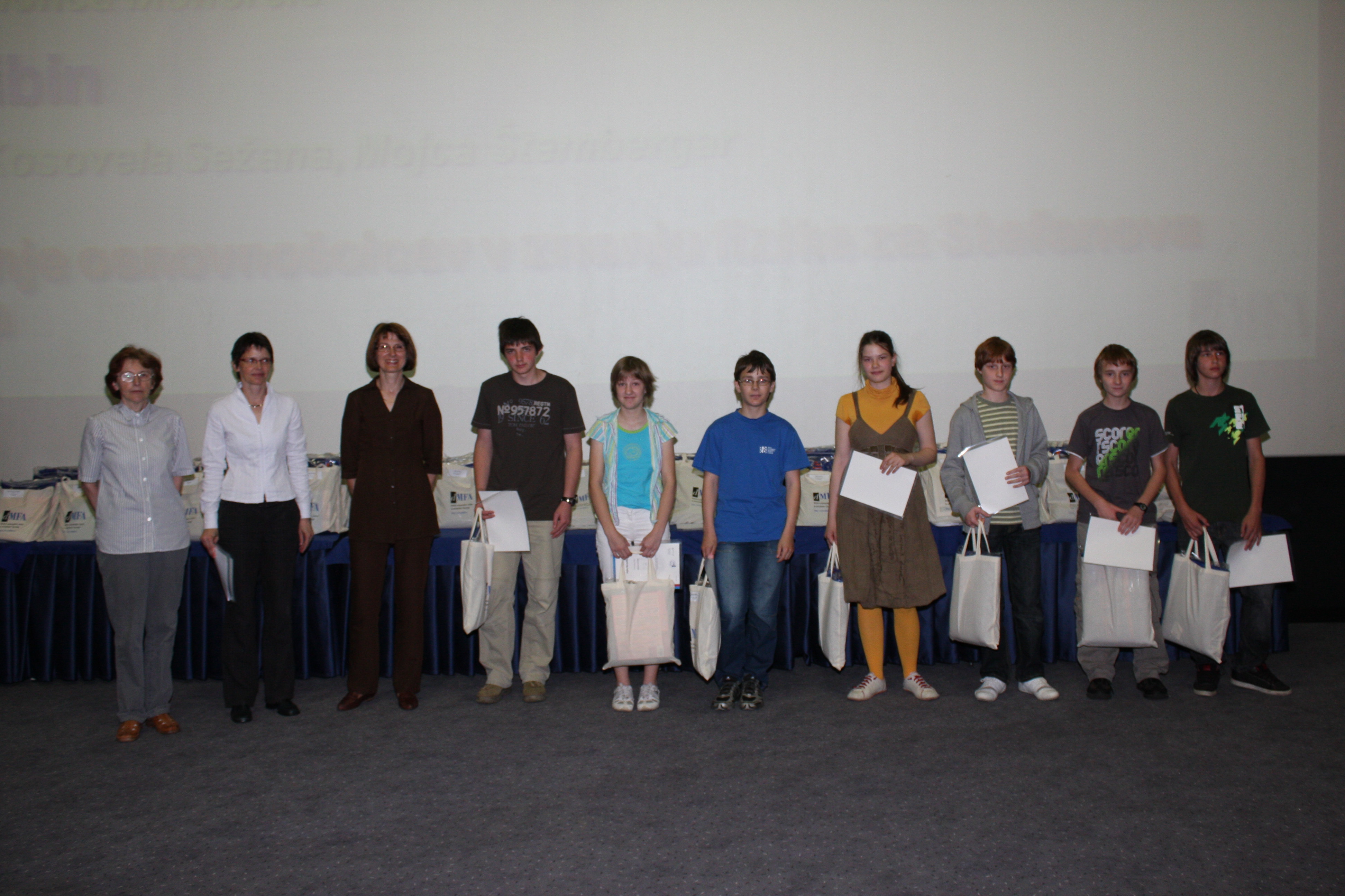 DMFA Slovenije dovoljuje shranitev slik v elektronski obliki in uporabo v individualne namene nagrajenih tekmovalcev. Uporaba posameznih slik na spletnih straneh šol ali v šolskih publikacijah je dovoljena, navesti je potrebno vir slik s povezavo na spletno stran DMFA Slovenije: <a href="http://www.dmfa.si/" title="DMFA Slovenije">www.dmfa.si</a>. Avtor slik: Vojko Opaškar.