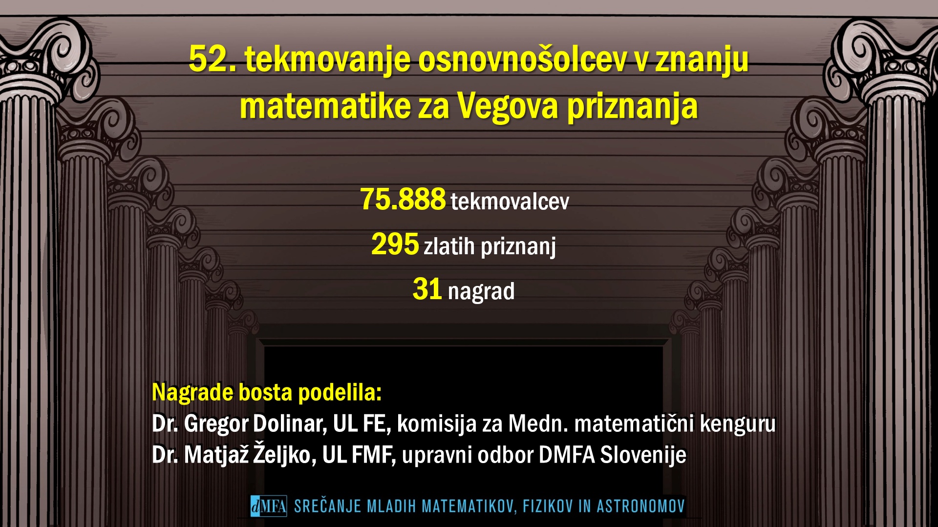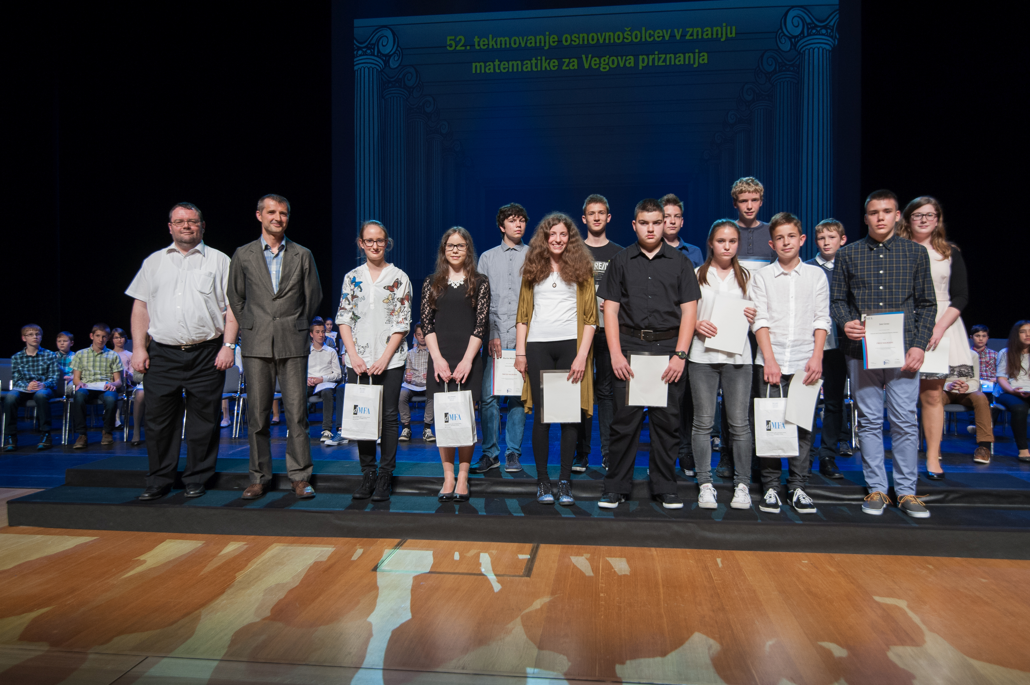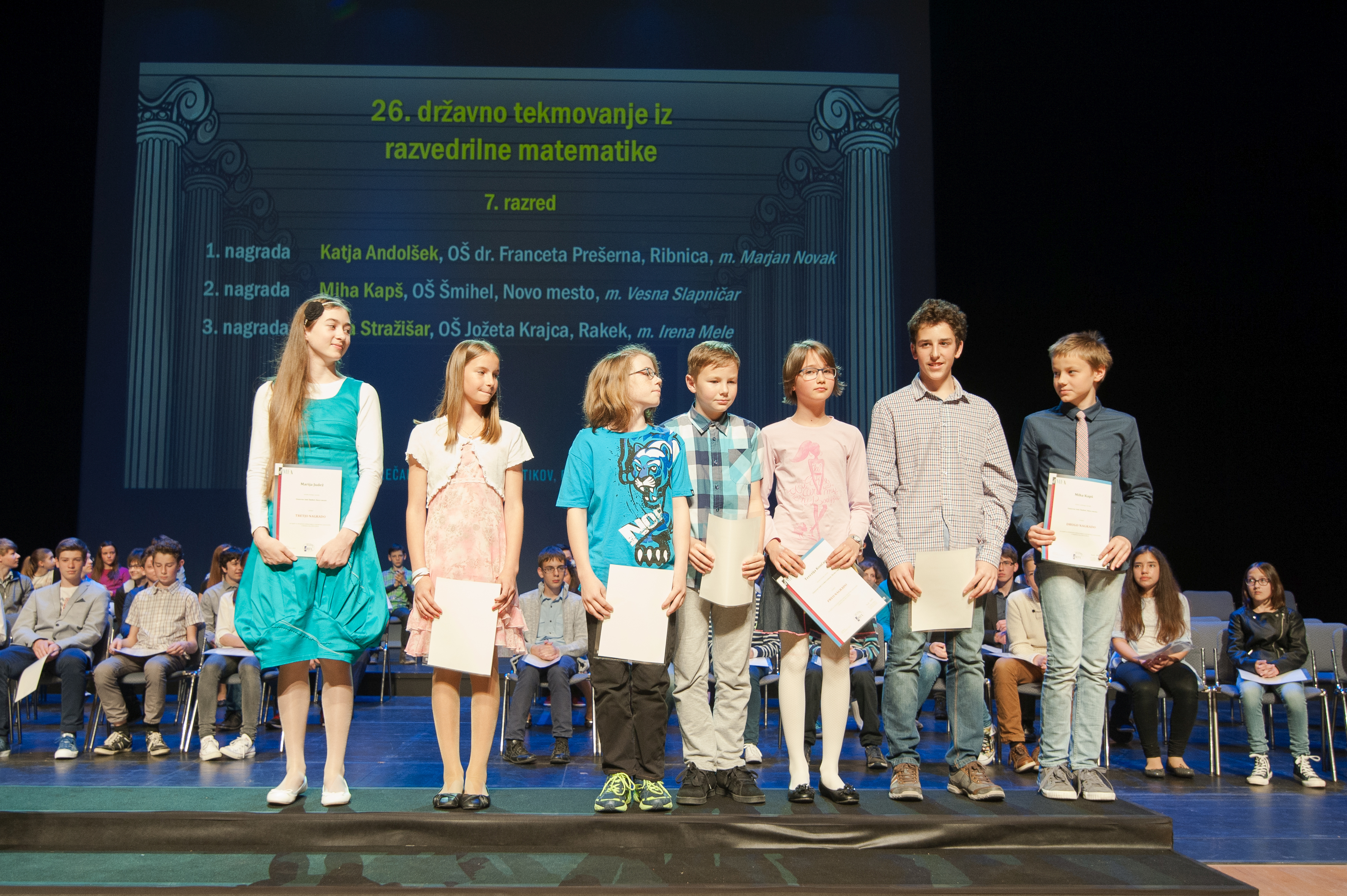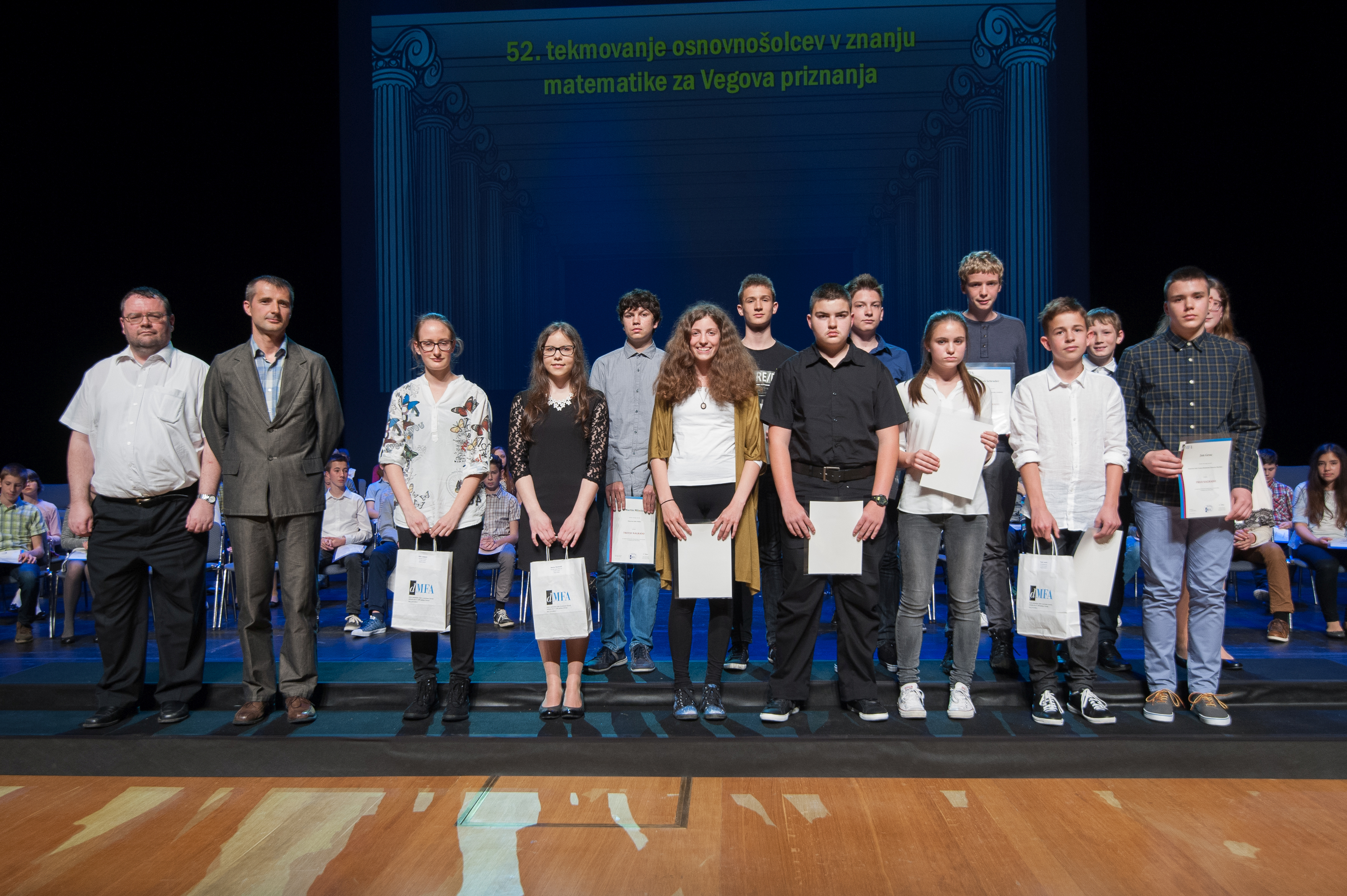 DMFA Slovenije dovoljuje shranitev slik v elektronski obliki in uporabo v individualne namene nagrajenih tekmovalcev. Uporaba posameznih slik na spletnih straneh šol ali v šolskih publikacijah je dovoljena, navesti je potrebno vir slik s povezavo na spletno stran DMFA Slovenije: <a href="http://www.dmfa.si/" title="DMFA Slovenije">www.dmfa.si</a>. Avtor slik: Jan Šuntajs.