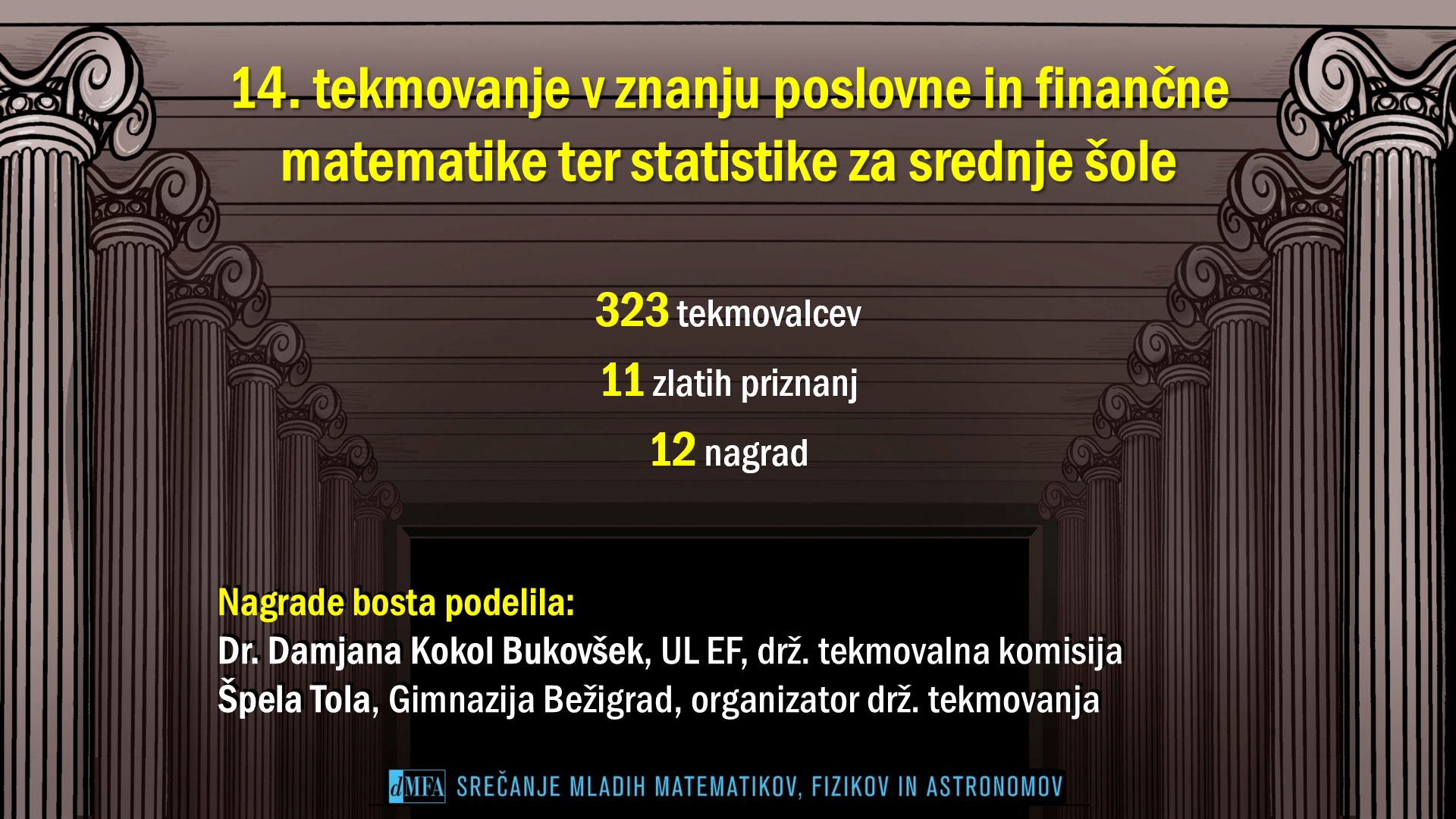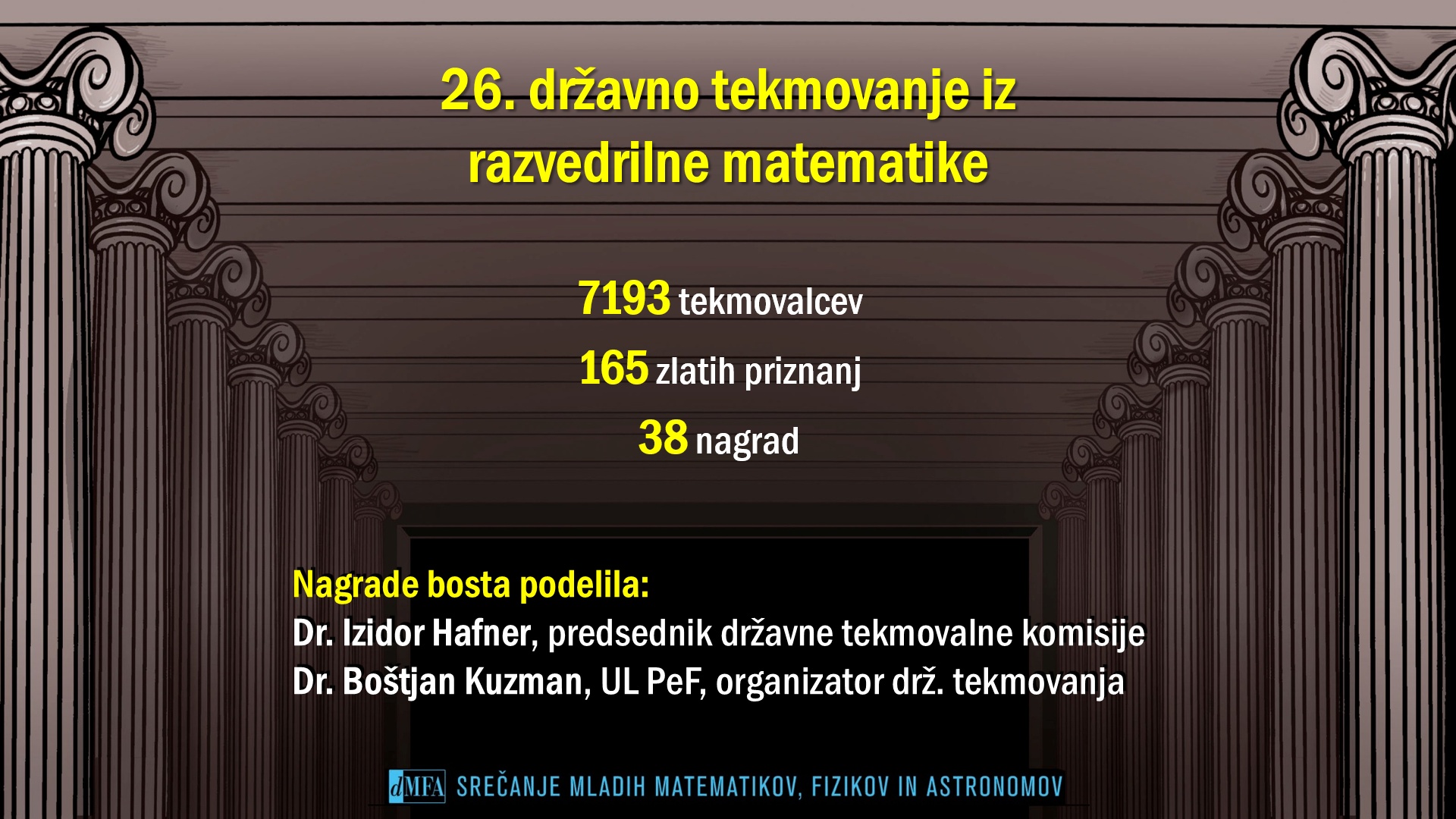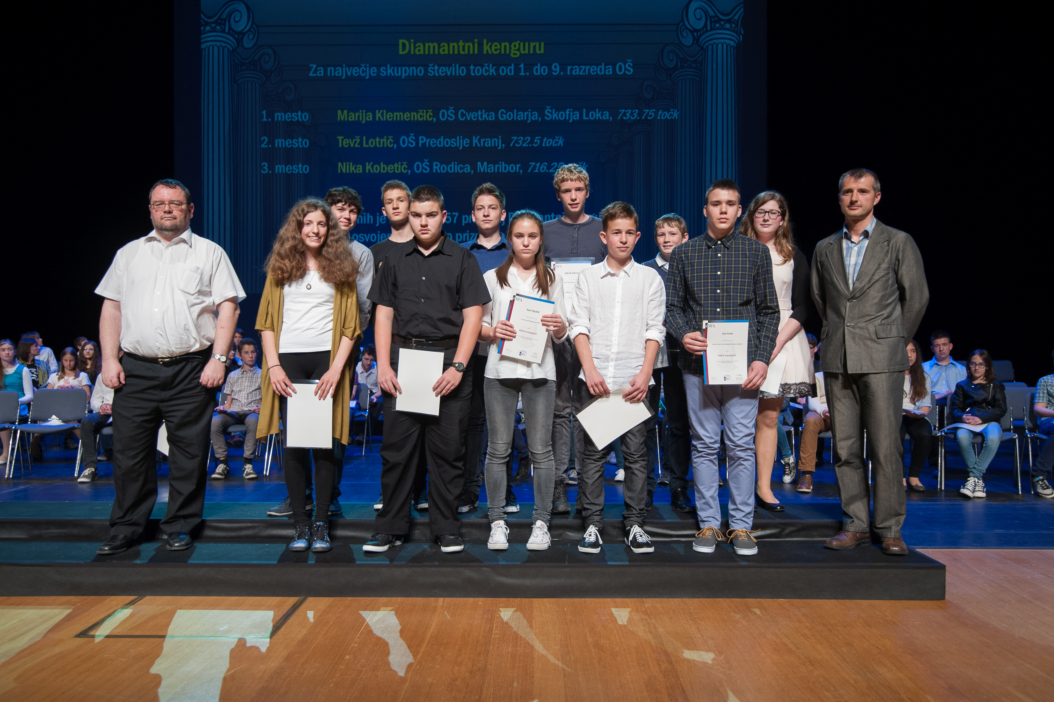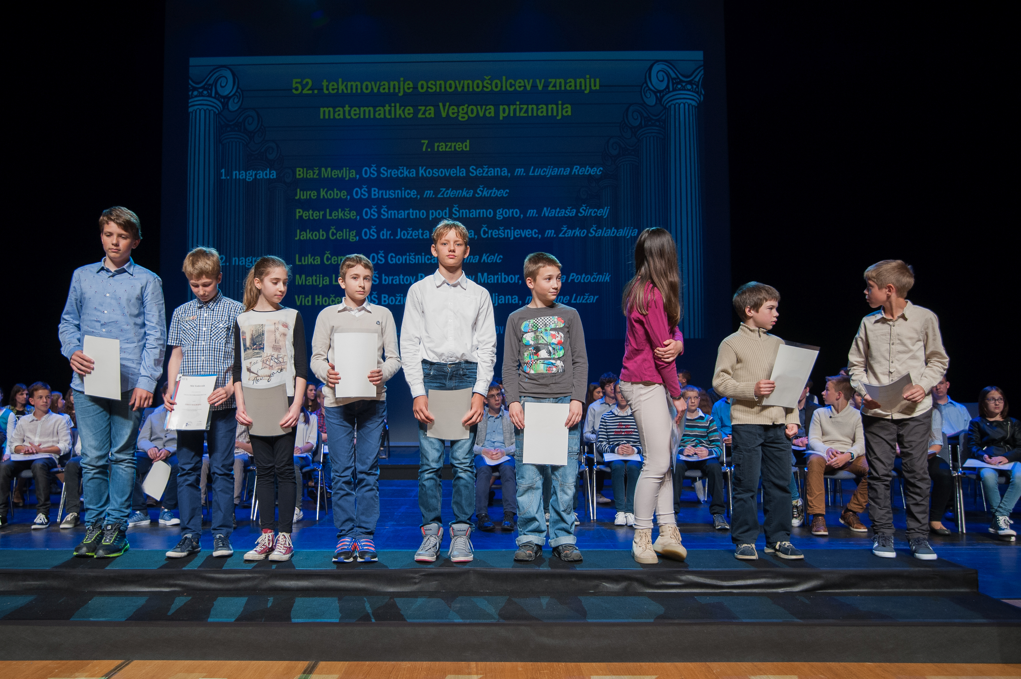 DMFA Slovenije dovoljuje shranitev slik v elektronski obliki in uporabo v individualne namene nagrajenih tekmovalcev. Uporaba posameznih slik na spletnih straneh šol ali v šolskih publikacijah je dovoljena, navesti je potrebno vir slik s povezavo na spletno stran DMFA Slovenije: <a href="http://www.dmfa.si/" title="DMFA Slovenije">www.dmfa.si</a>. Avtor slik: Jan Šuntajs.