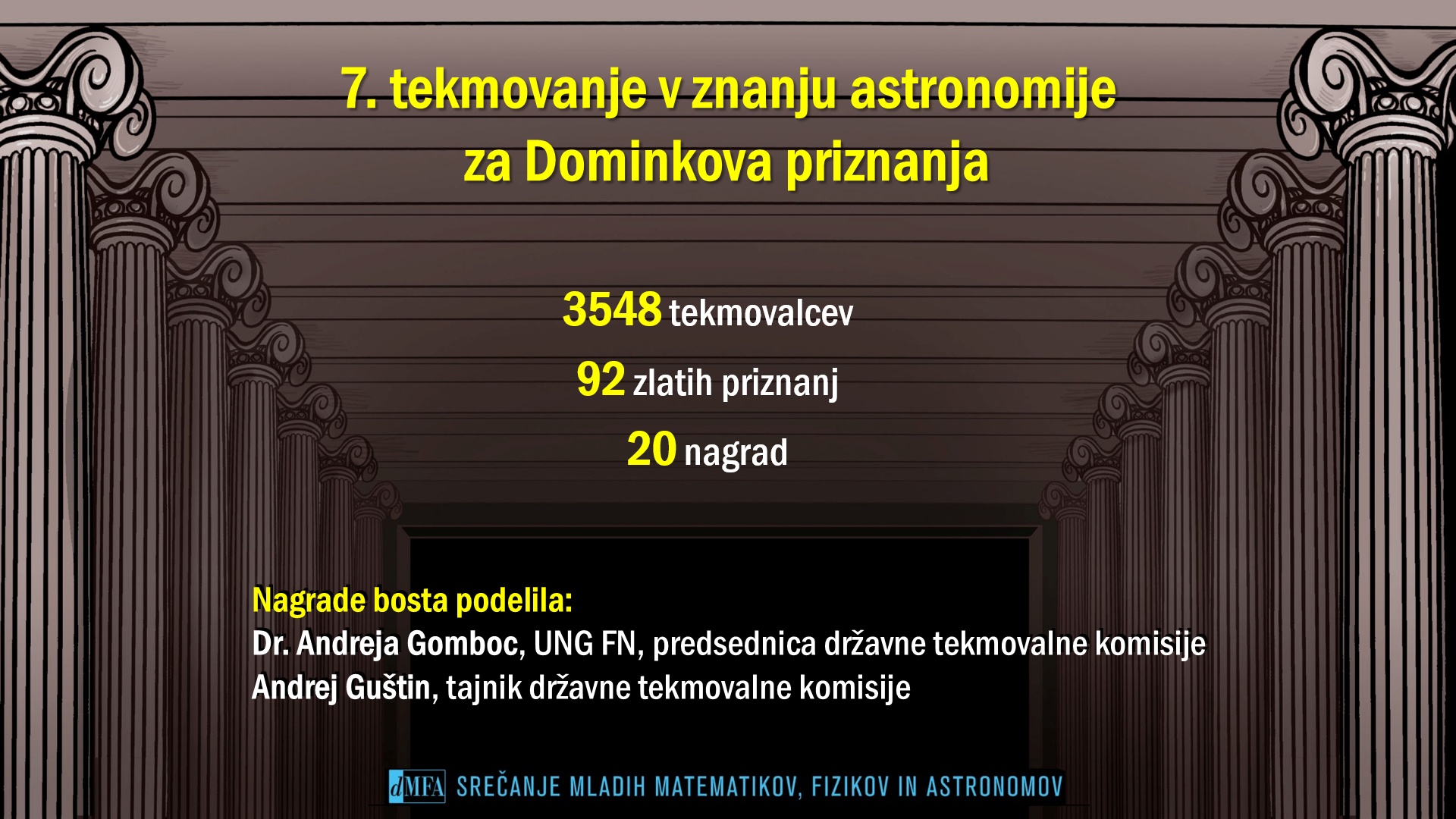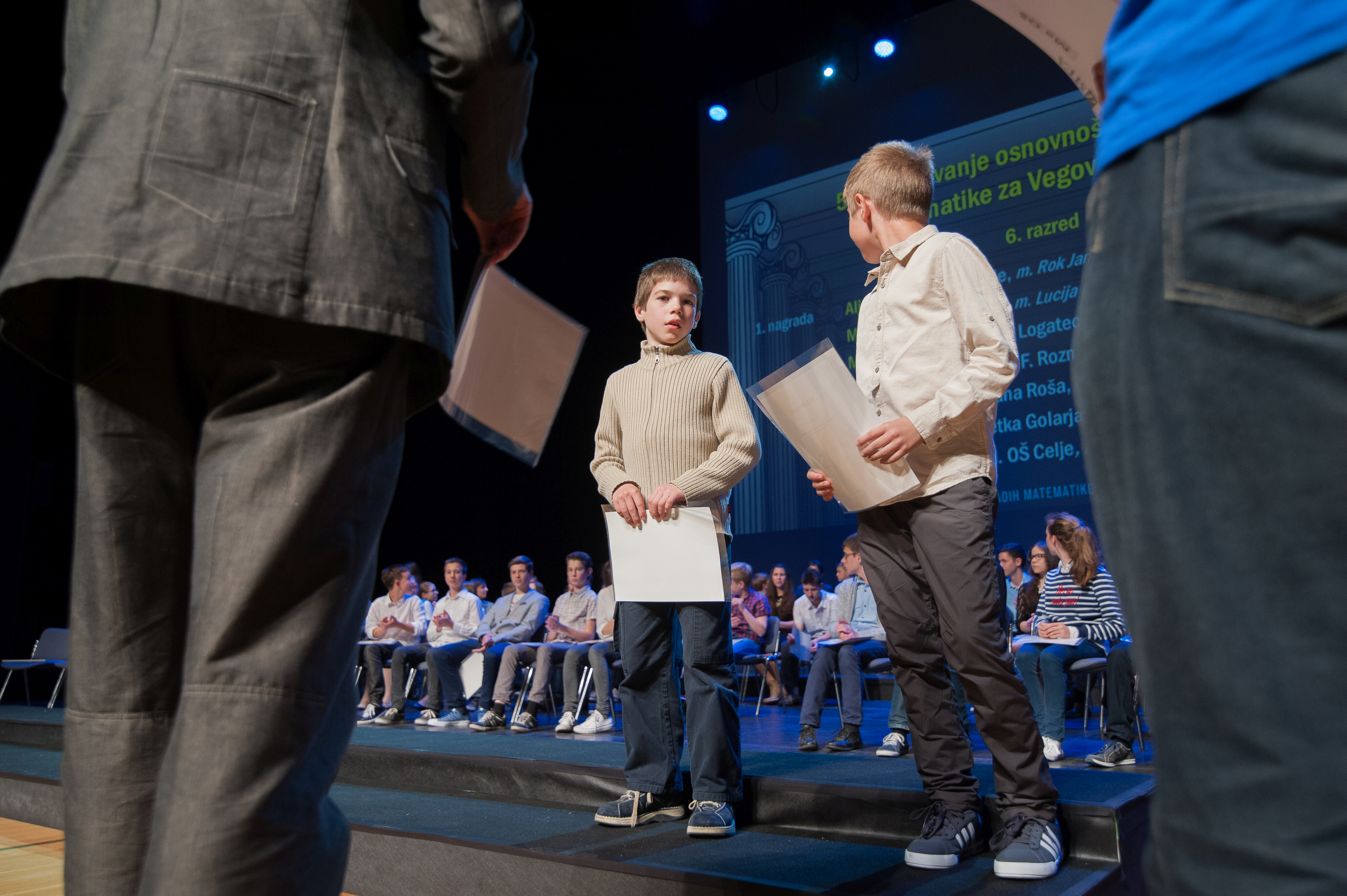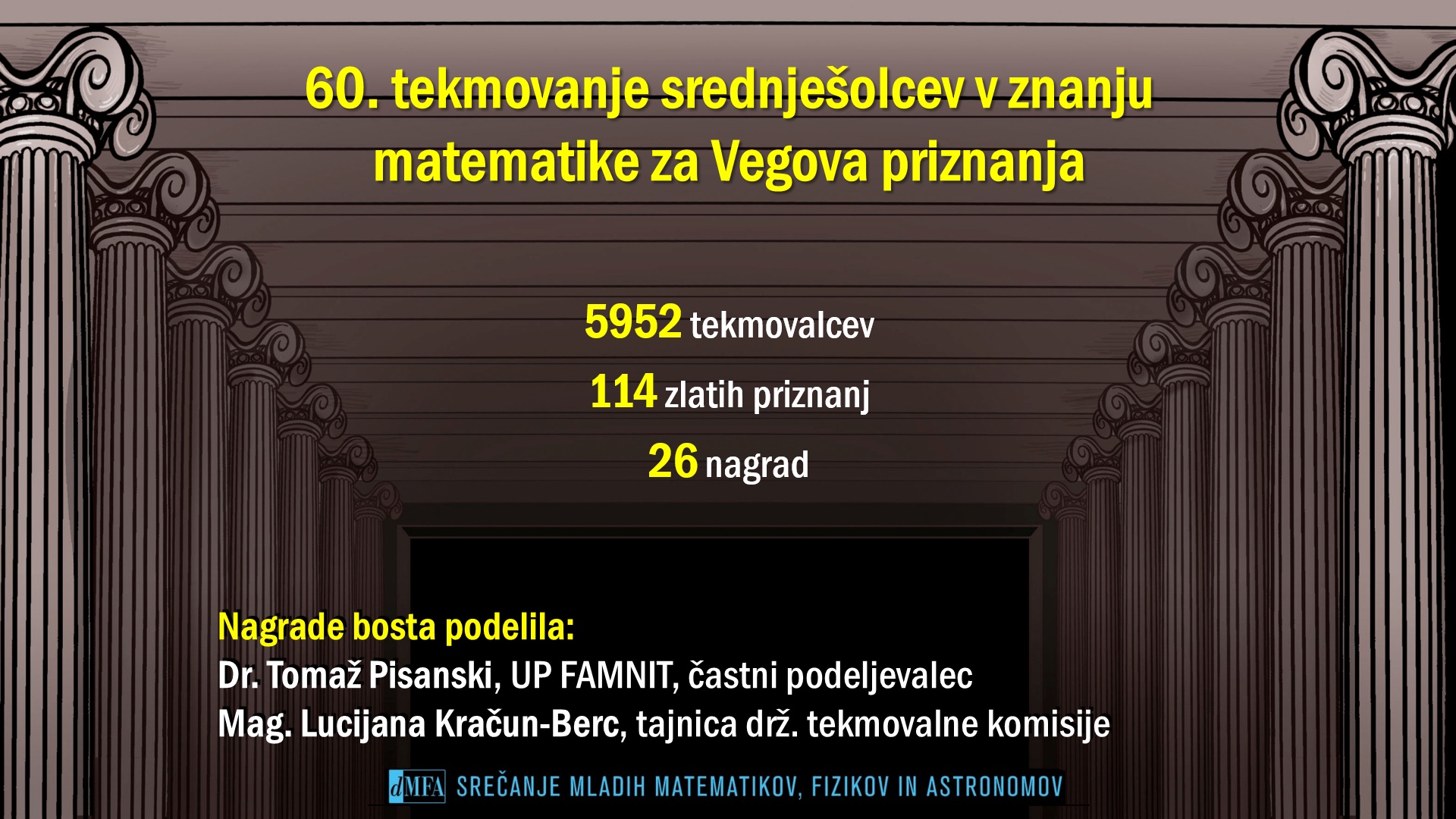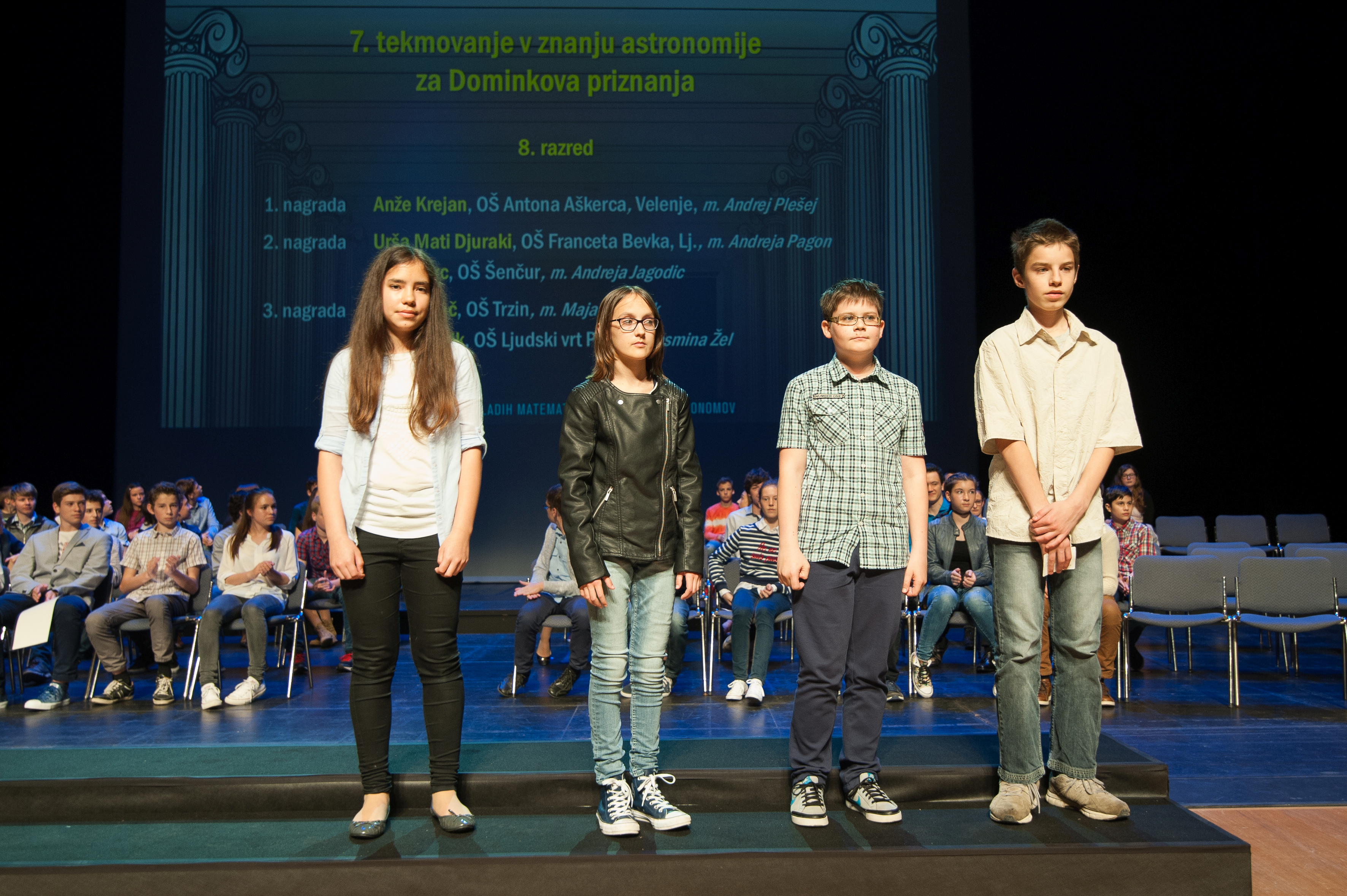 DMFA Slovenije dovoljuje shranitev slik v elektronski obliki in uporabo v individualne namene nagrajenih tekmovalcev. Uporaba posameznih slik na spletnih straneh šol ali v šolskih publikacijah je dovoljena, navesti je potrebno vir slik s povezavo na spletno stran DMFA Slovenije: <a href="http://www.dmfa.si/" title="DMFA Slovenije">www.dmfa.si</a>. Avtor slik: Jan Šuntajs.