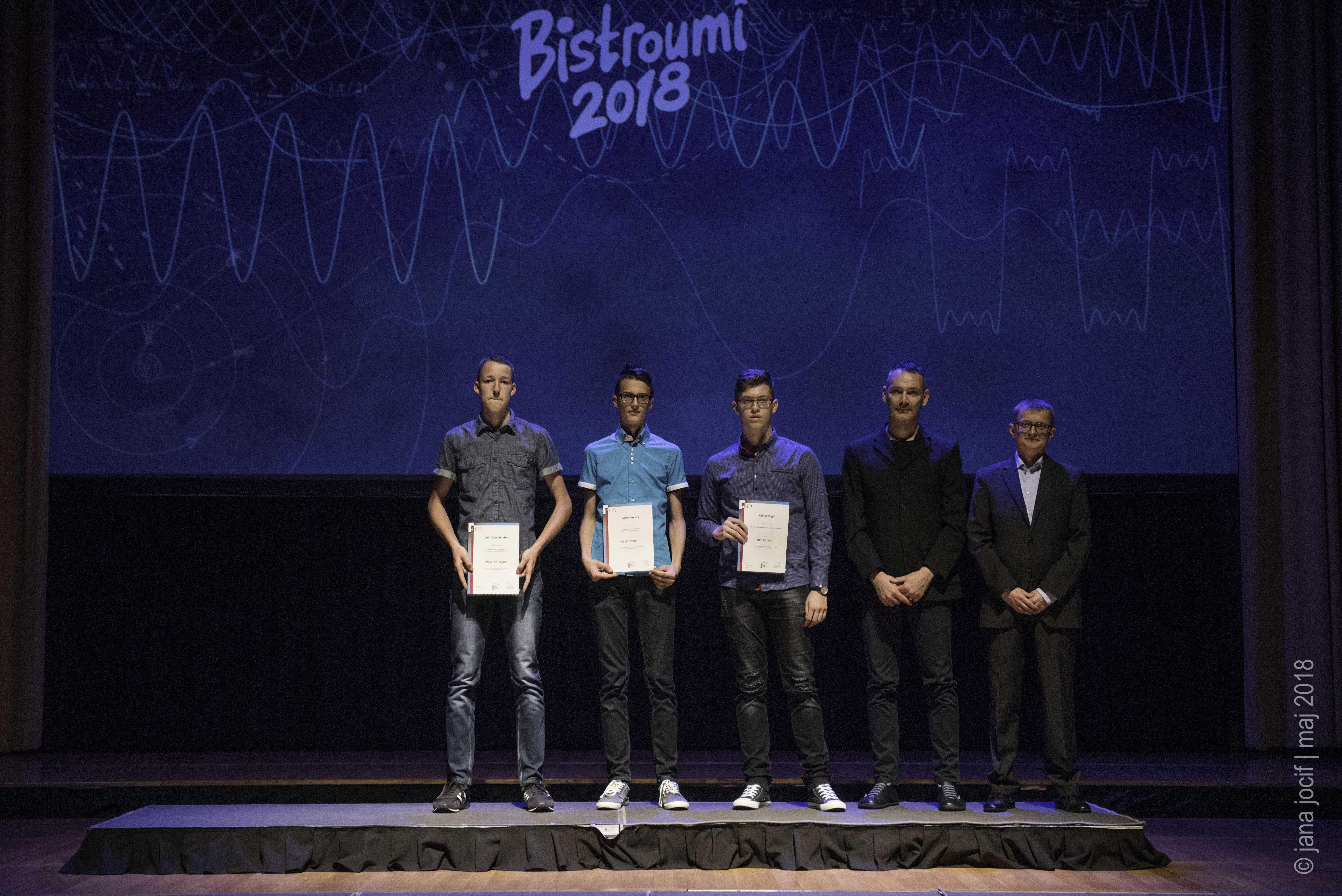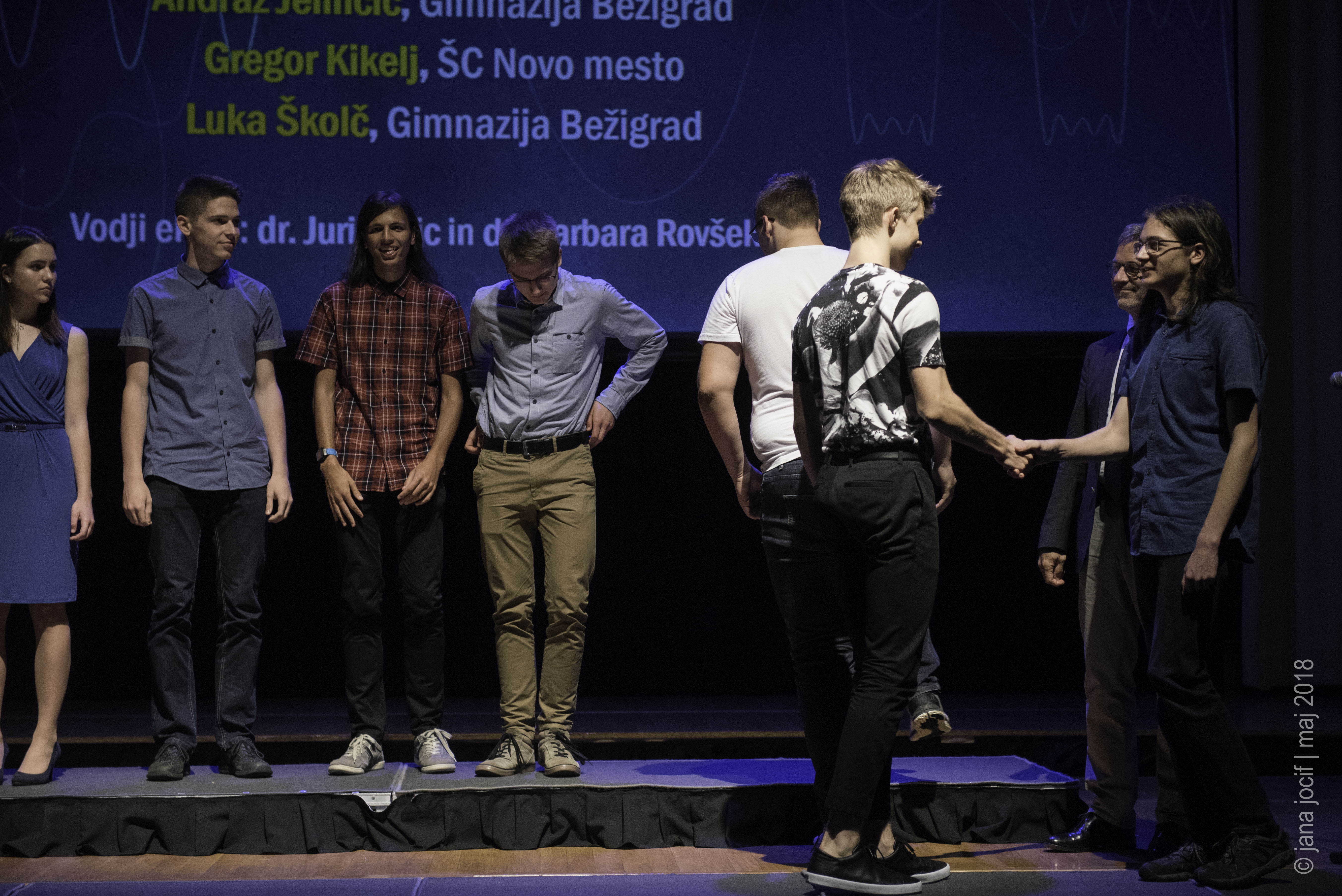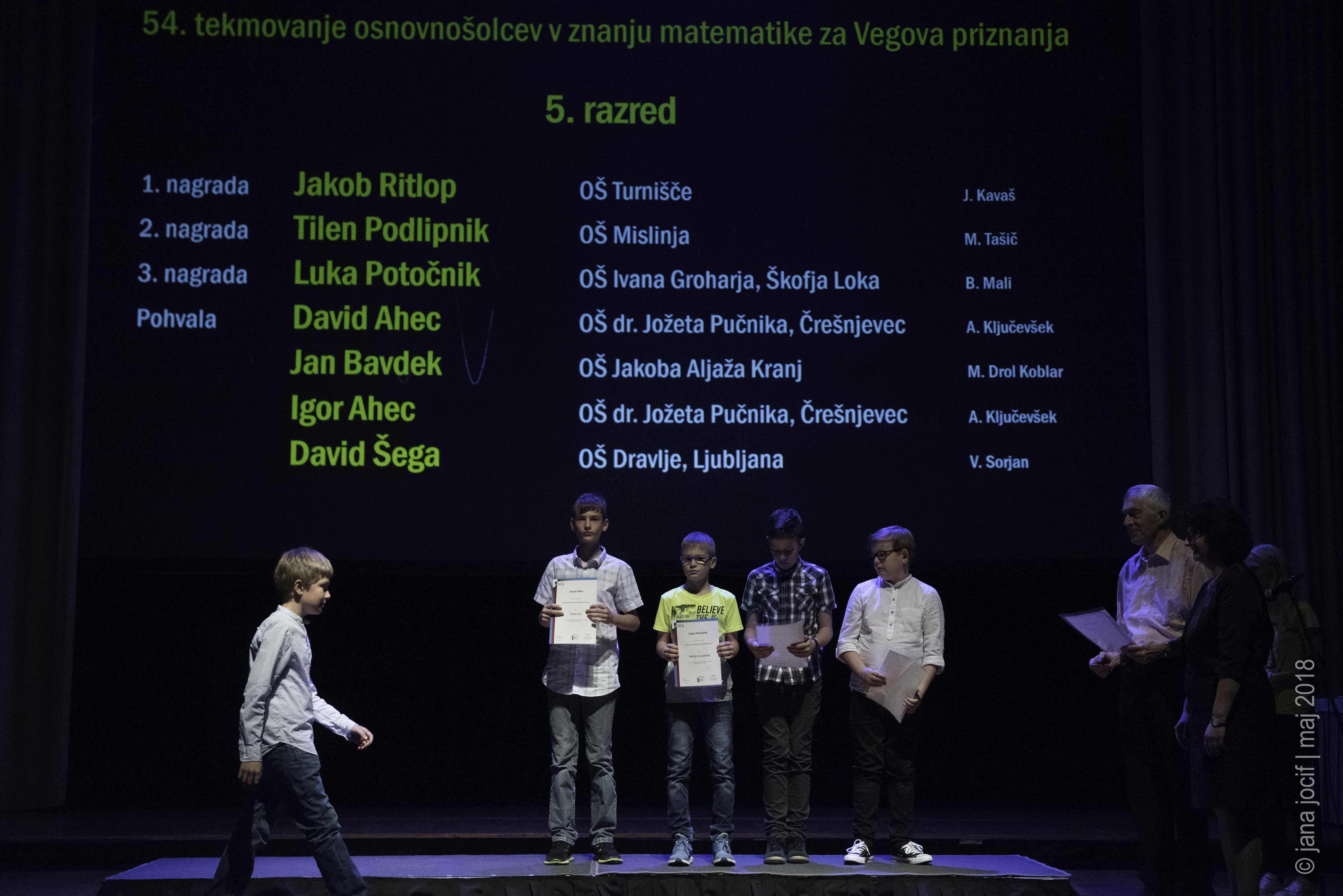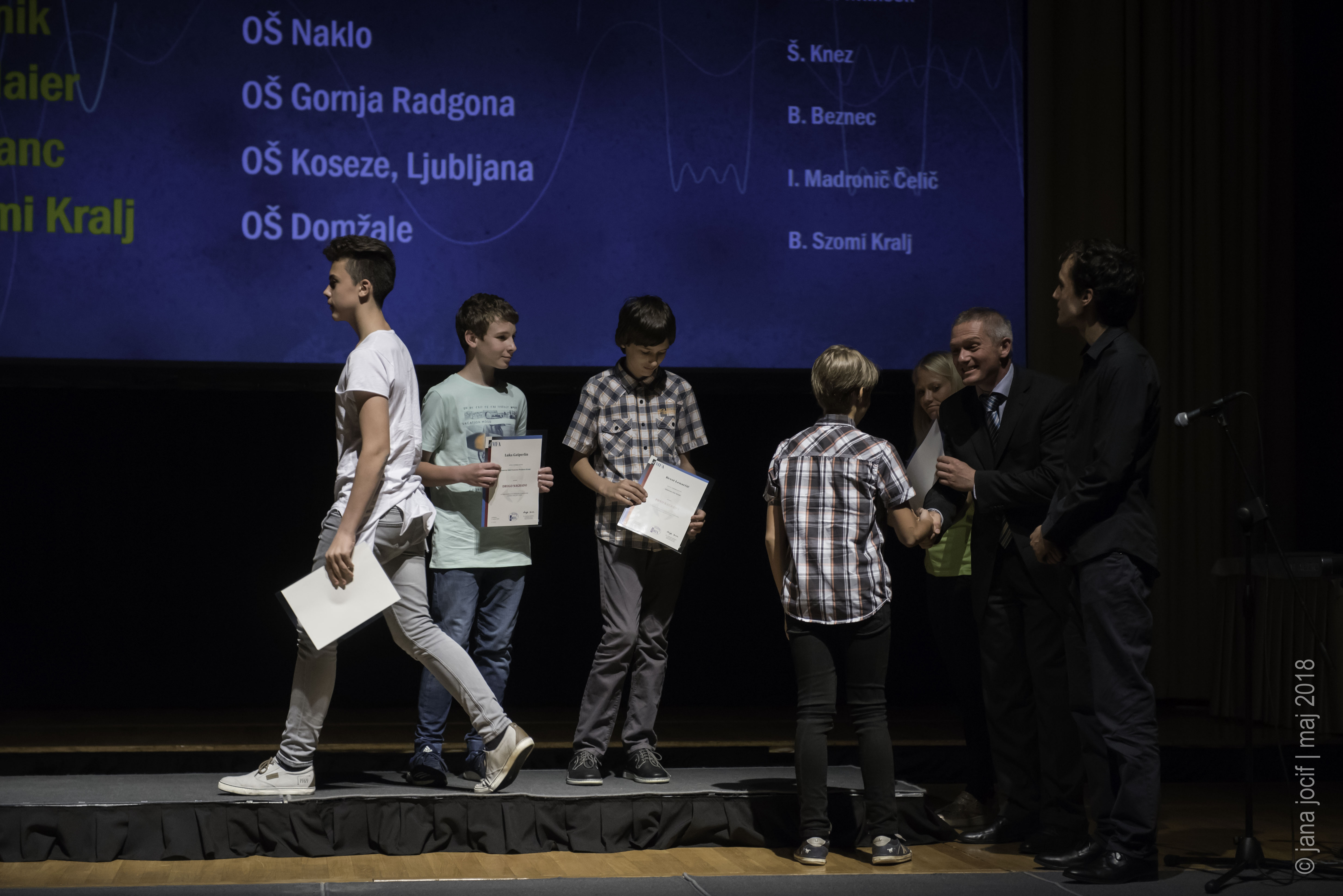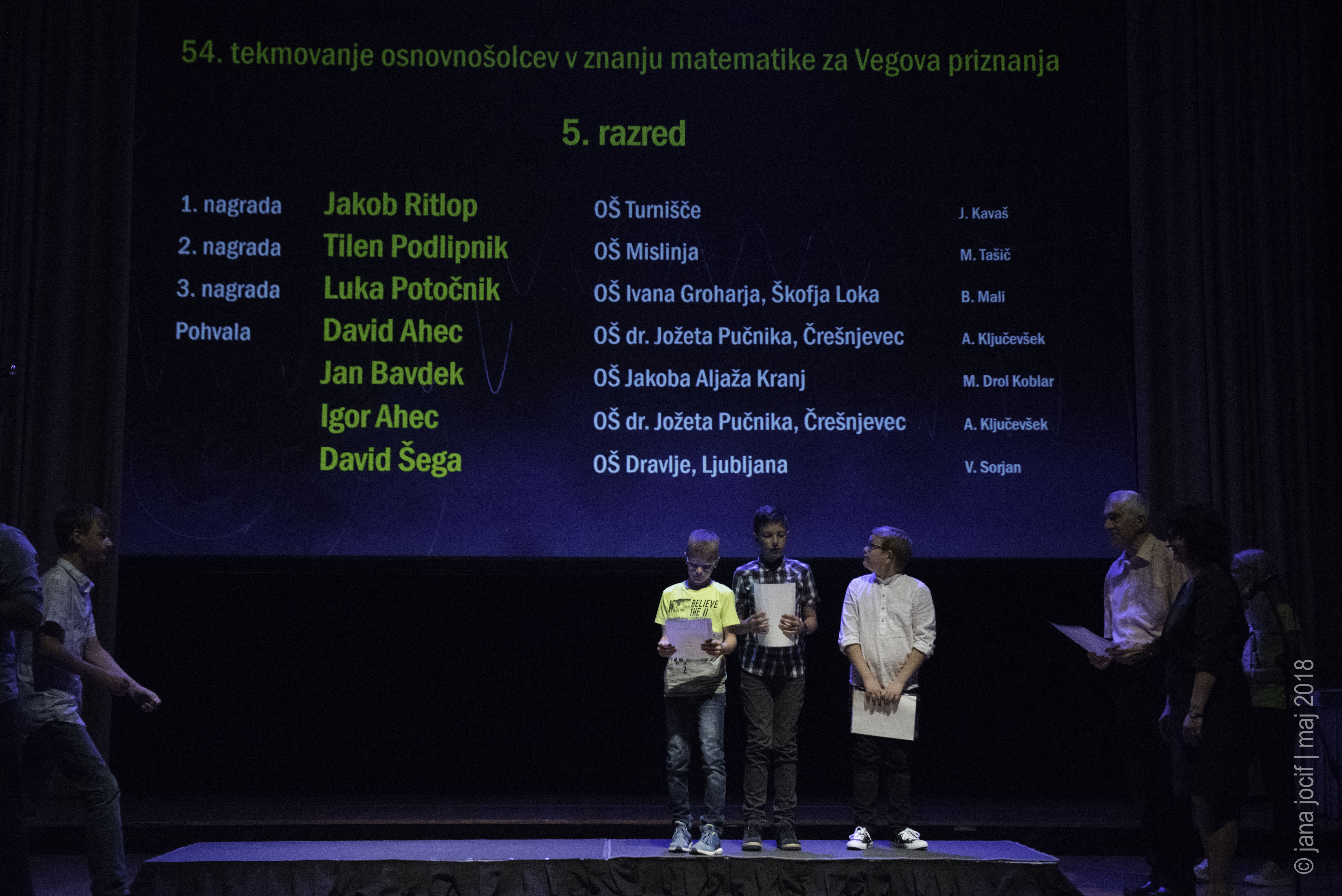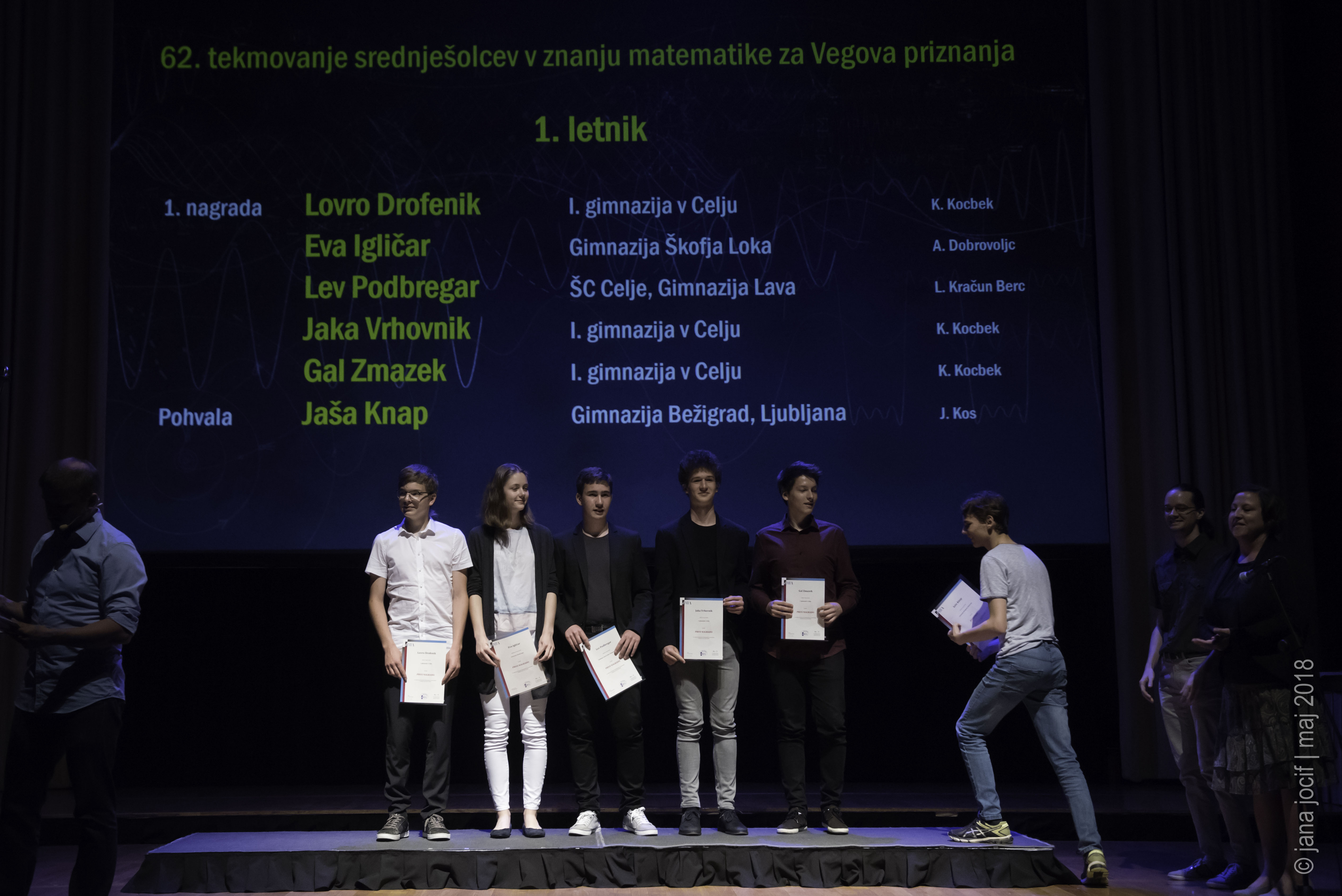 DMFA Slovenije dovoljuje shranitev slik v elektronski obliki in uporabo v individualne namene nagrajenih tekmovalcev. Uporaba posameznih slik na spletnih straneh šol ali v šolskih publikacijah je dovoljena, navesti je potrebno vir slik s povezavo na spletno stran DMFA Slovenije: <a href="http://www.dmfa.si/" title="DMFA Slovenije">www.dmfa.si</a>. Avtor slik: Jana Jocif.