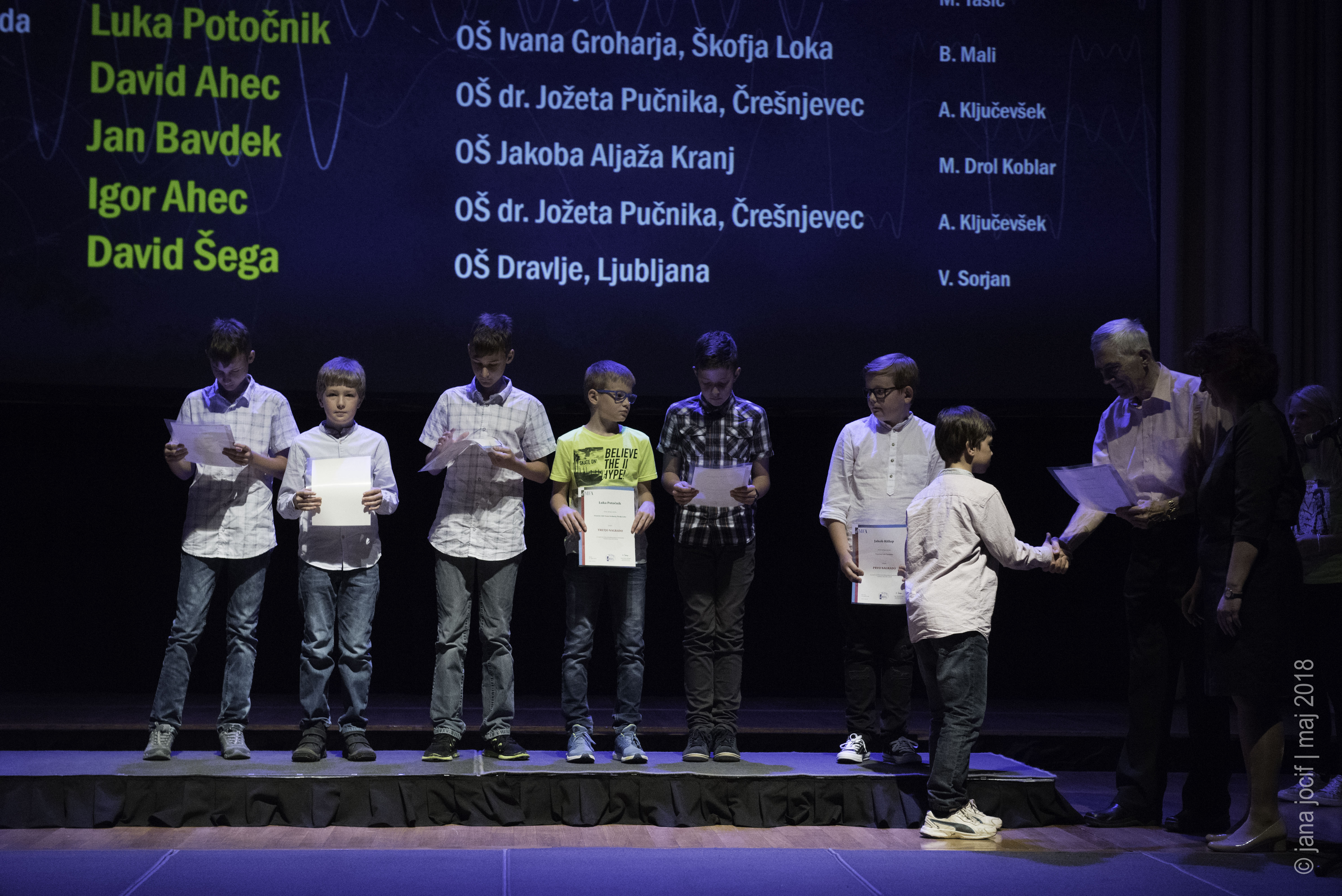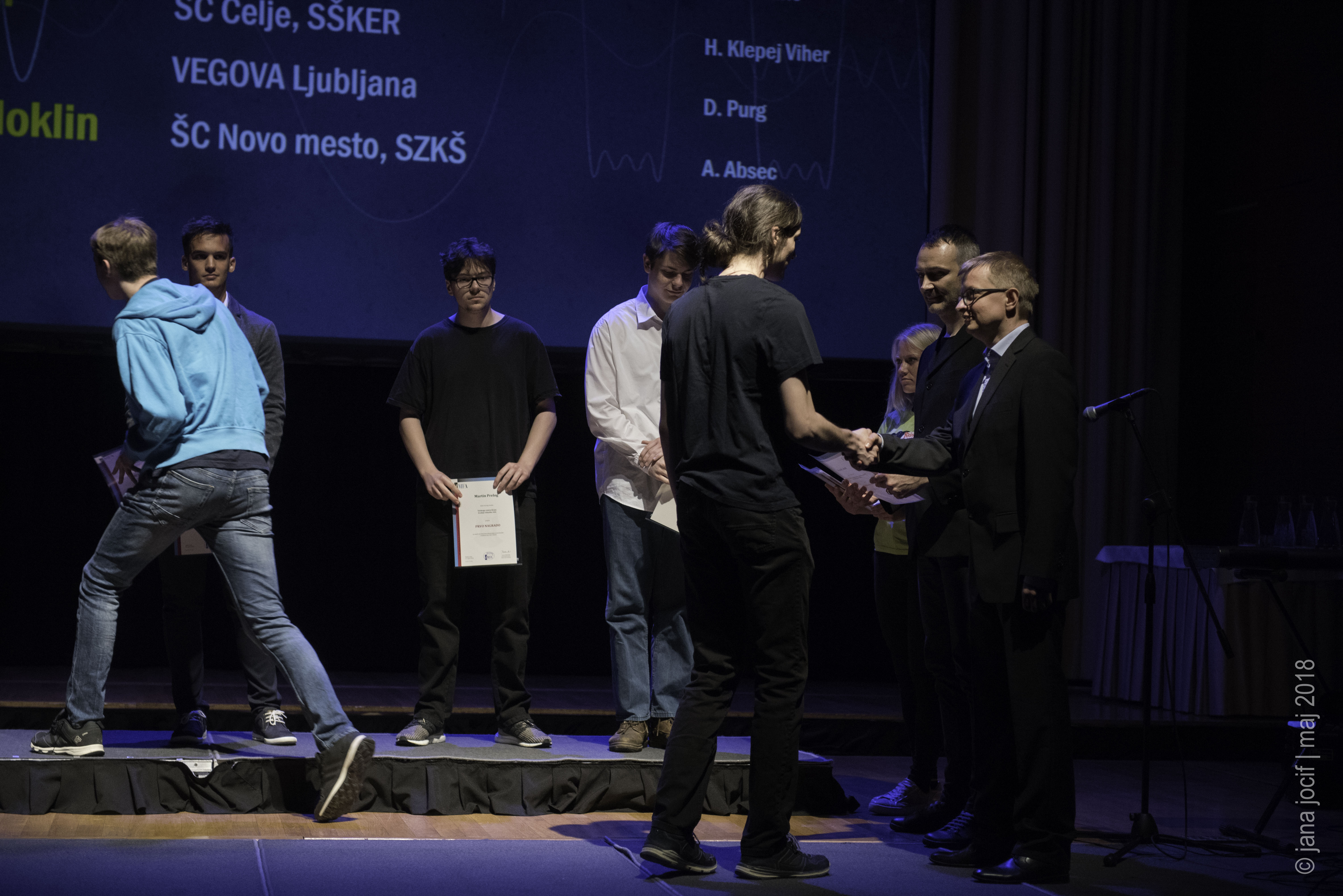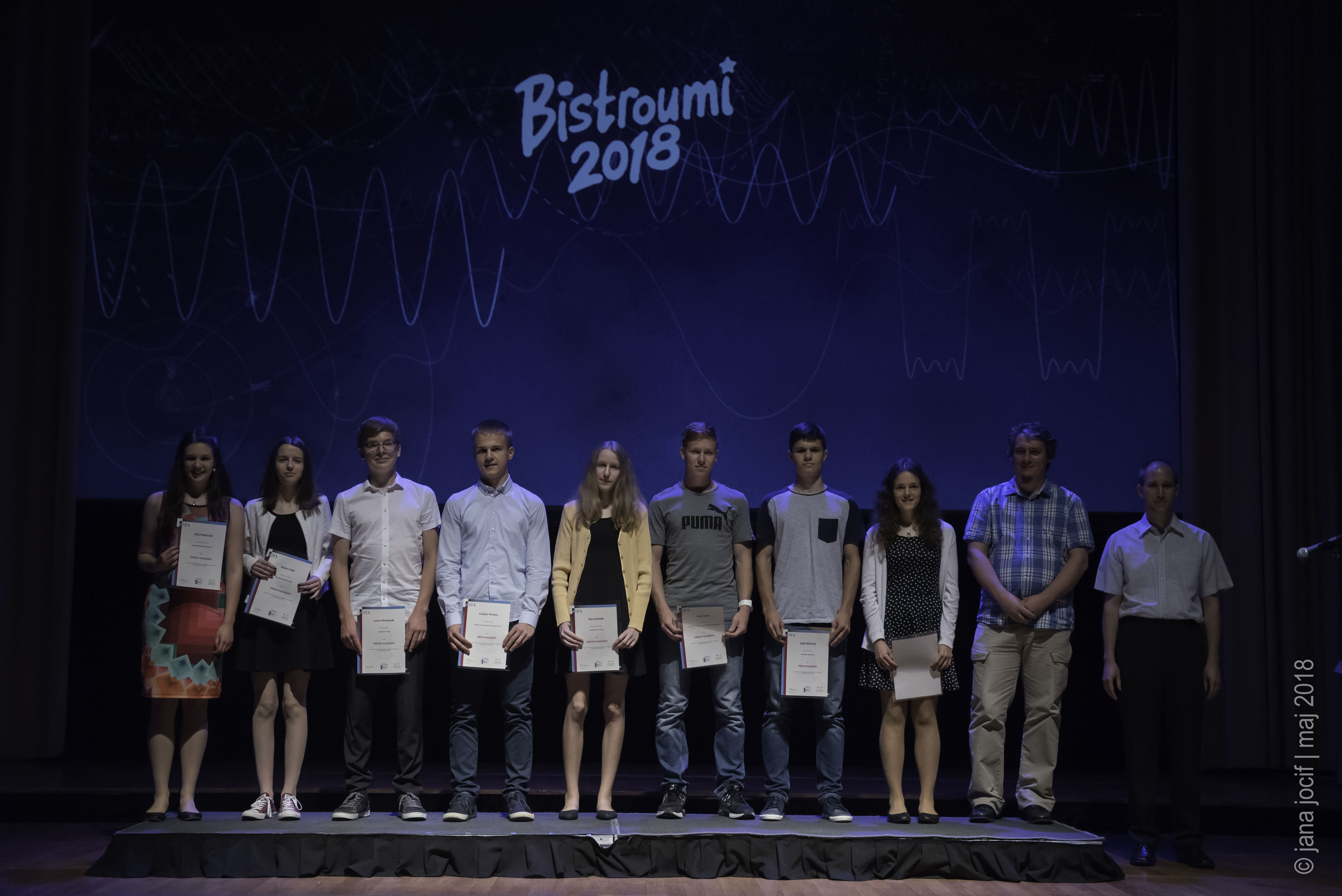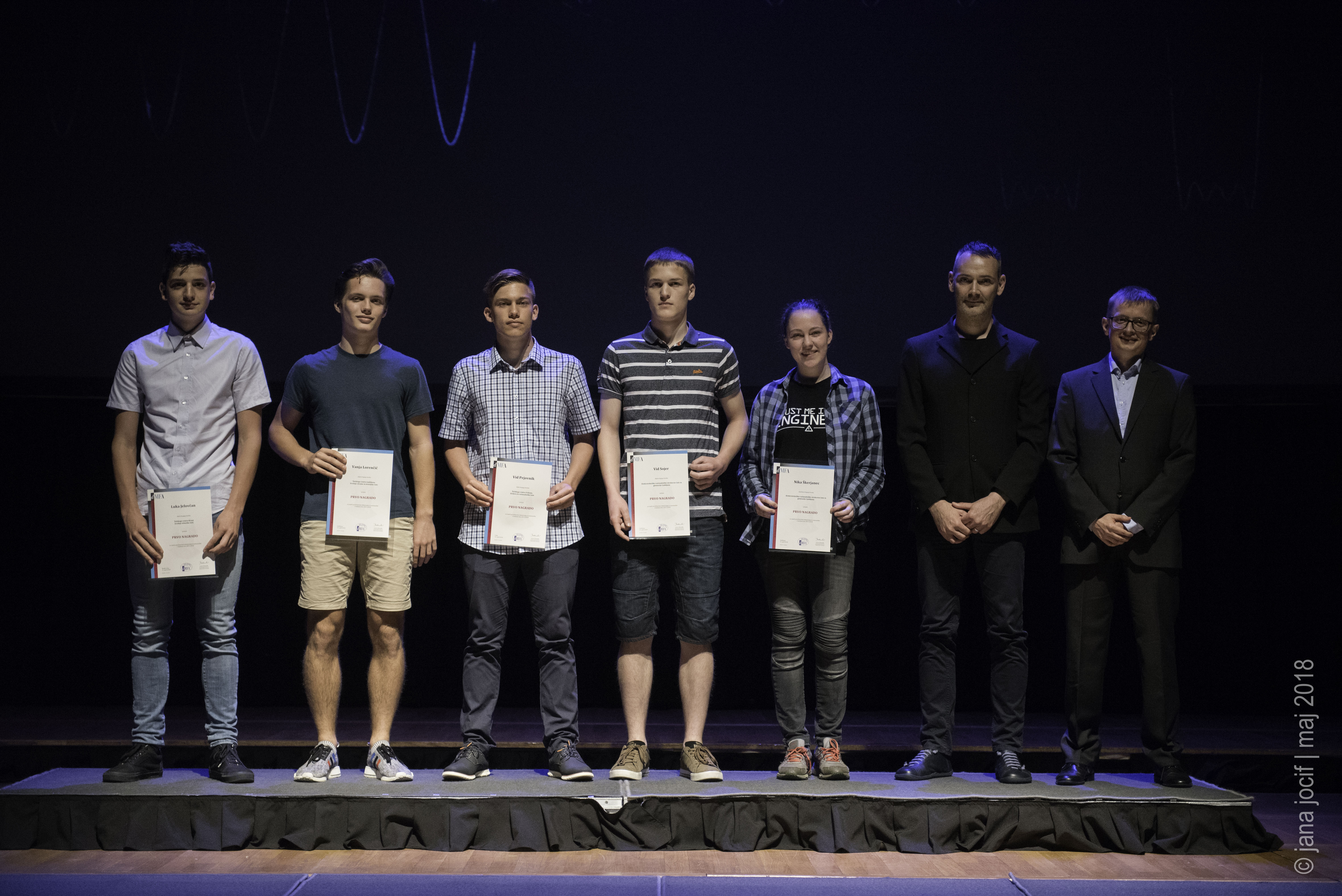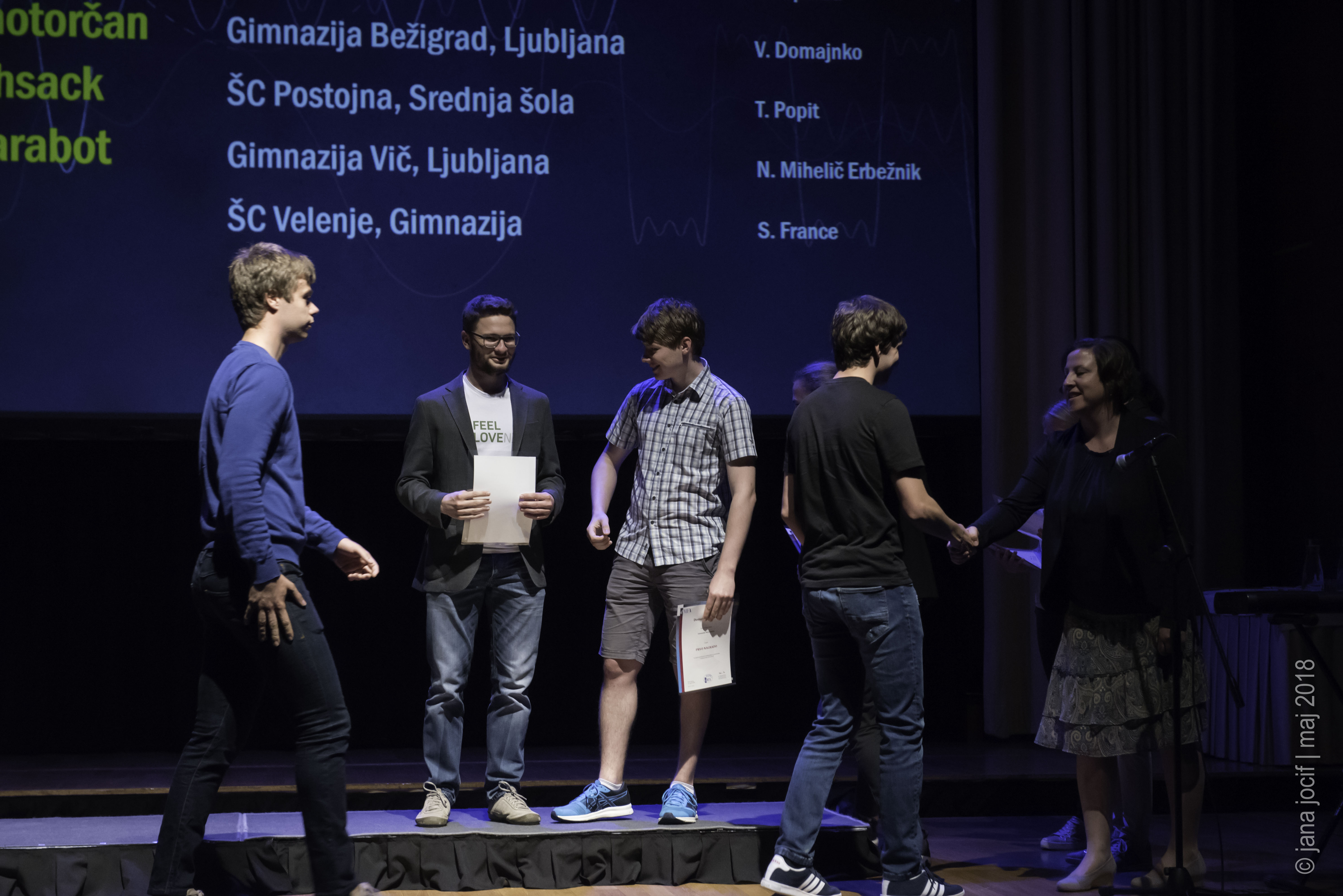 DMFA Slovenije dovoljuje shranitev slik v elektronski obliki in uporabo v individualne namene nagrajenih tekmovalcev. Uporaba posameznih slik na spletnih straneh šol ali v šolskih publikacijah je dovoljena, navesti je potrebno vir slik s povezavo na spletno stran DMFA Slovenije: <a href="http://www.dmfa.si/" title="DMFA Slovenije">www.dmfa.si</a>. Avtor slik: Jana Jocif.
