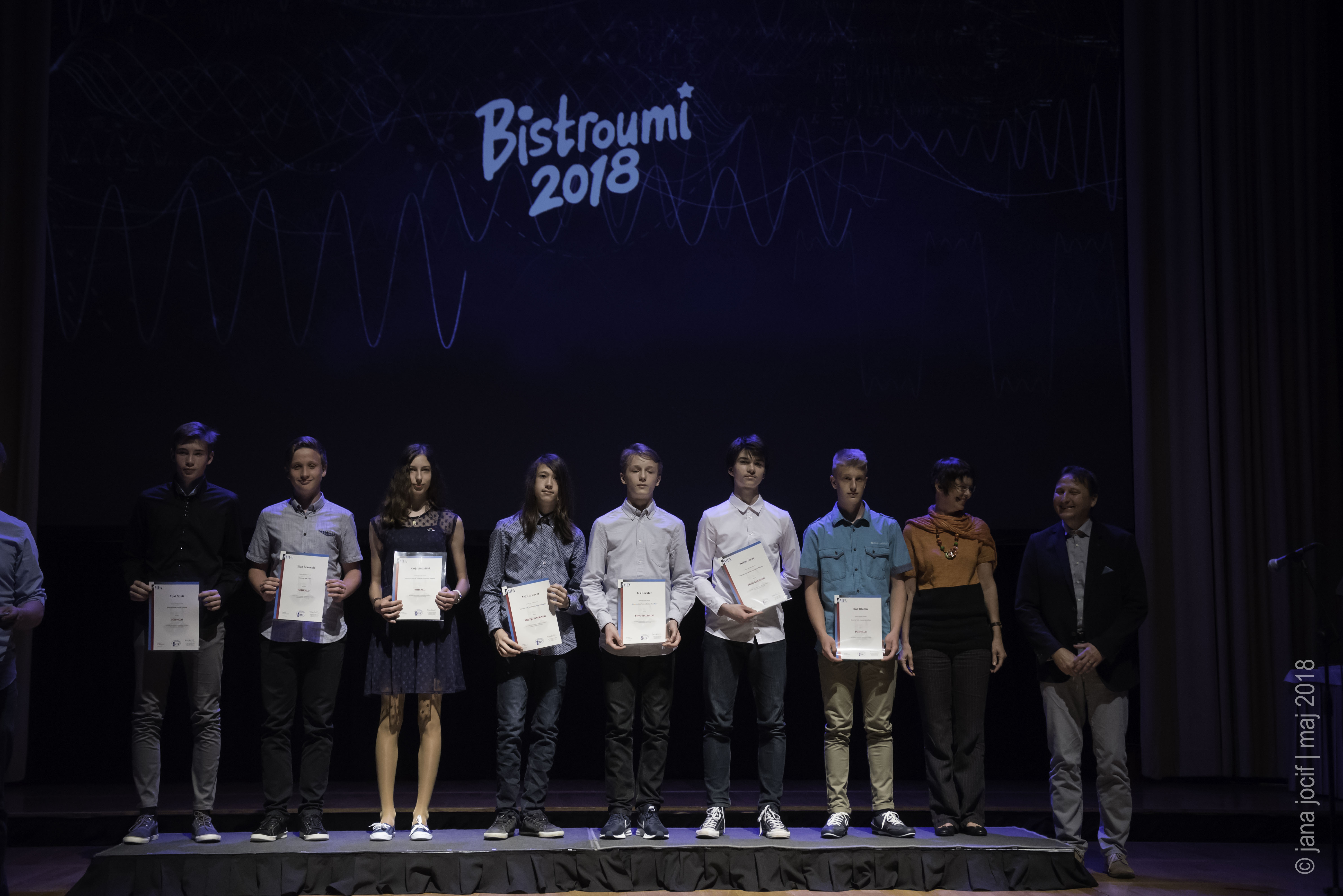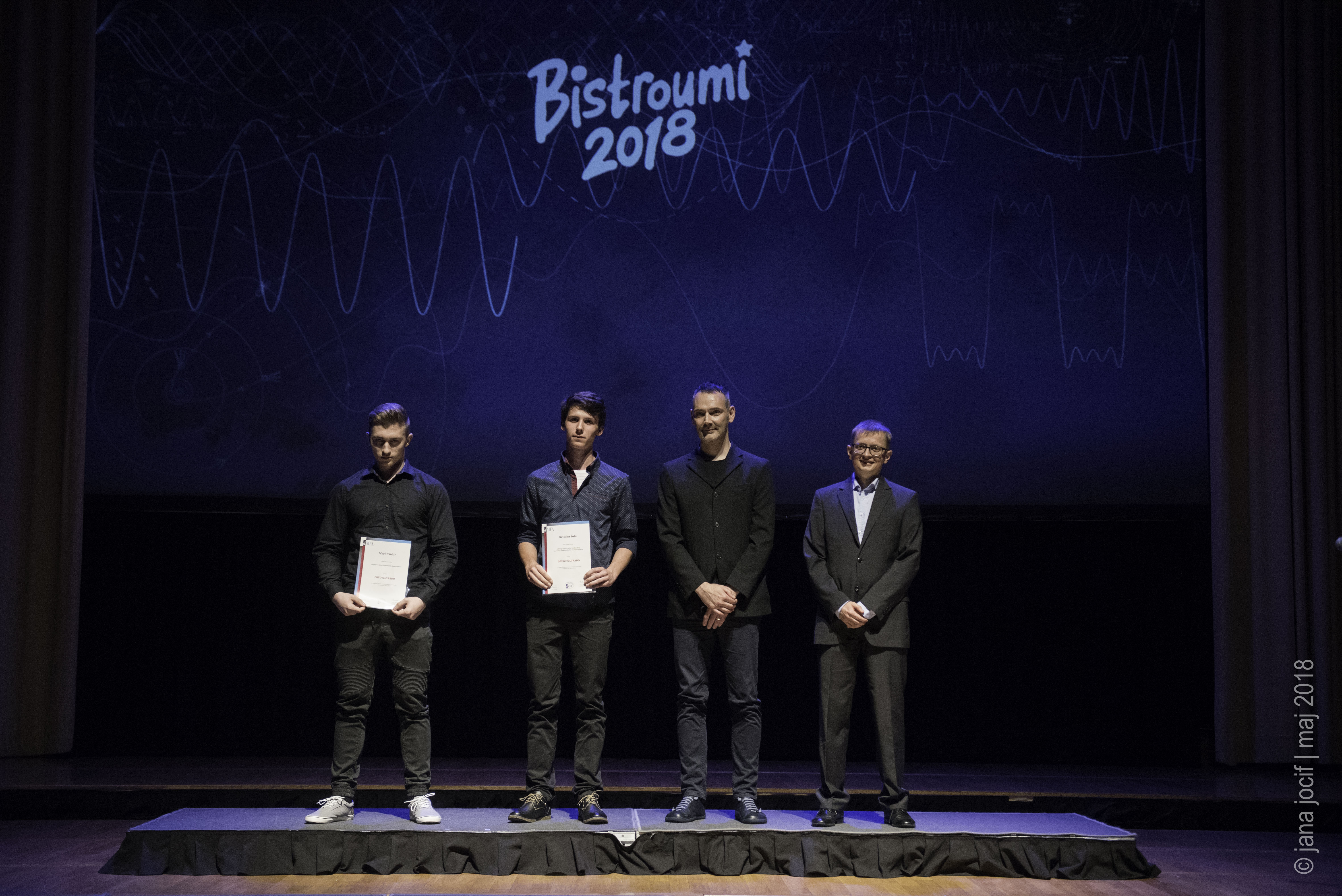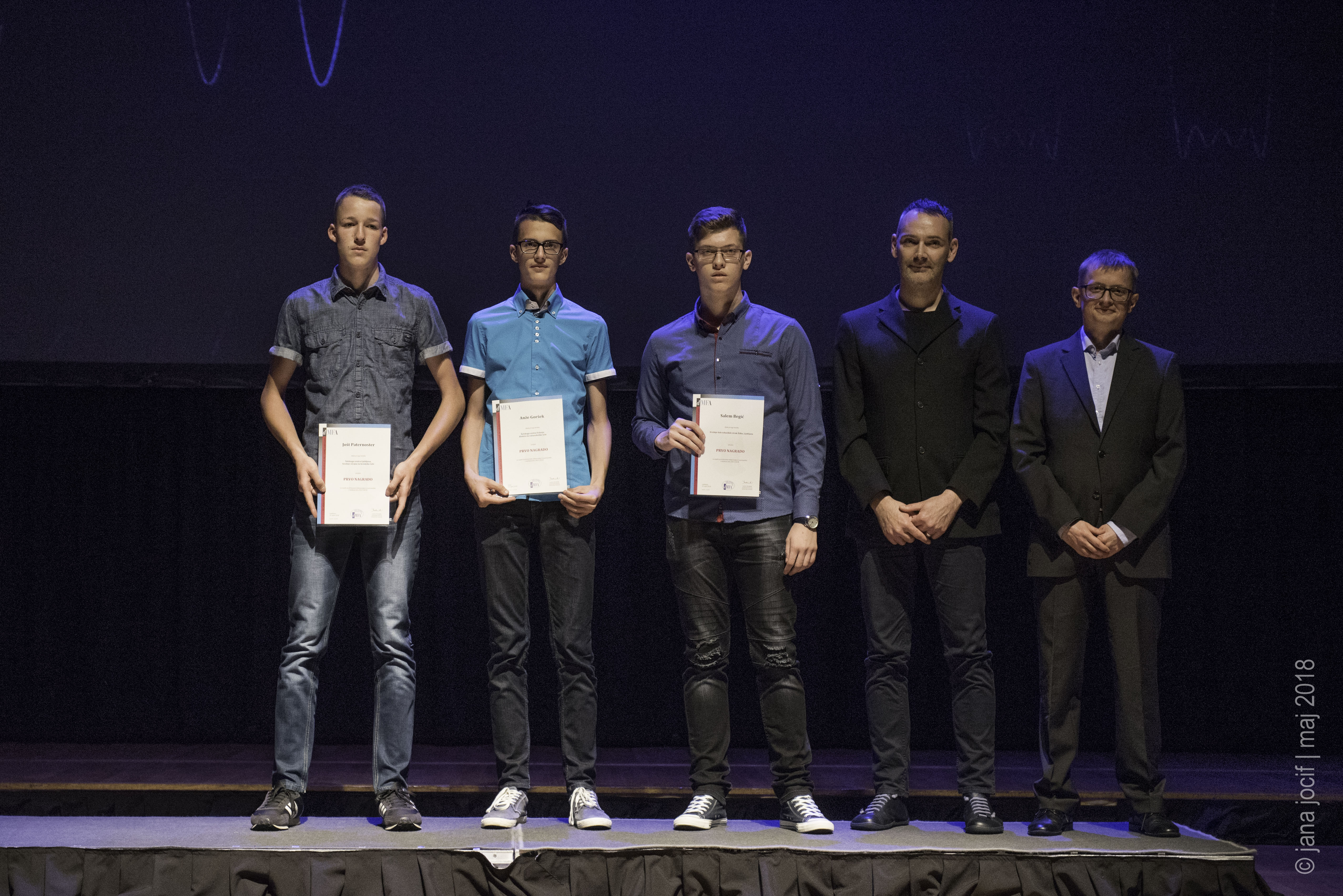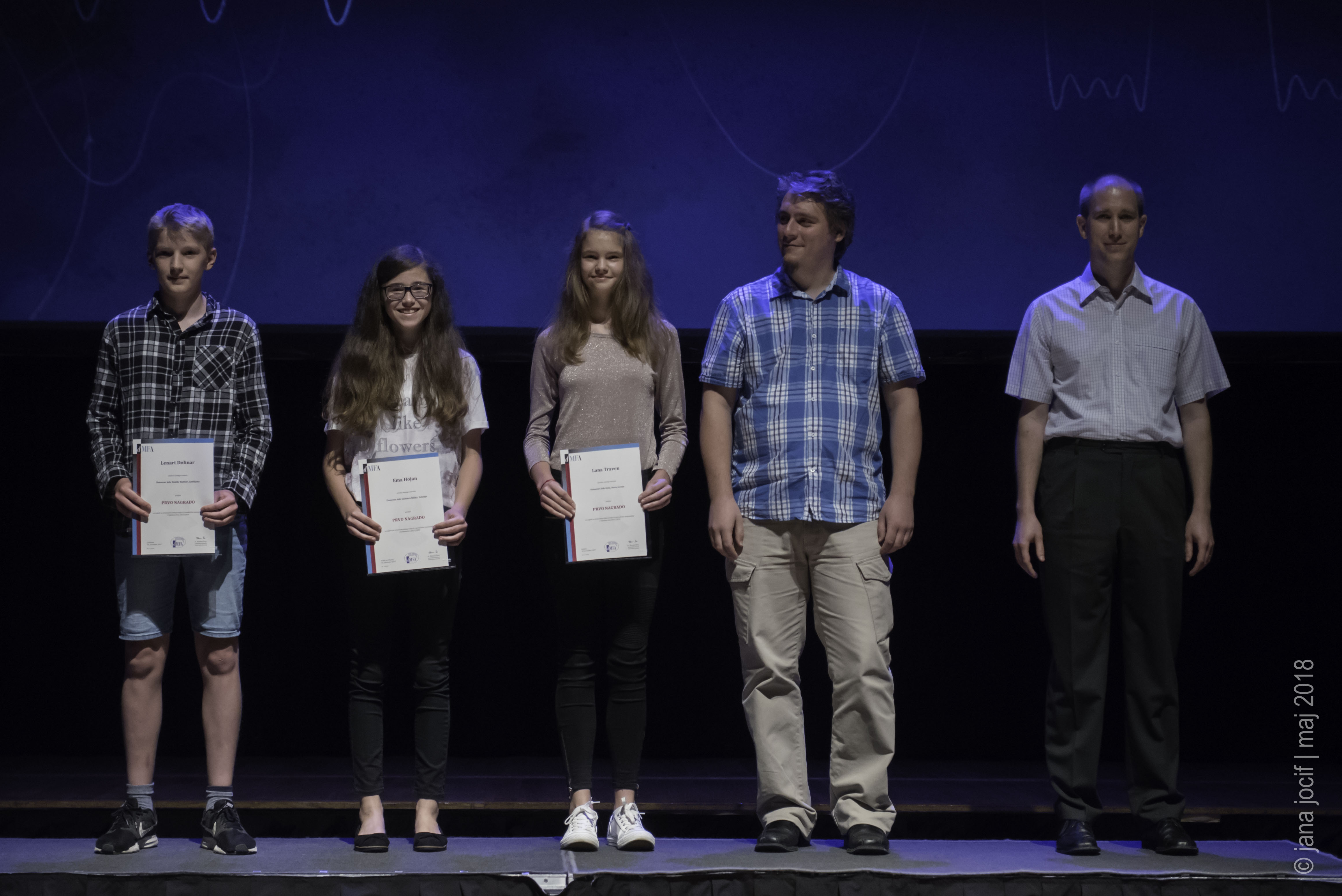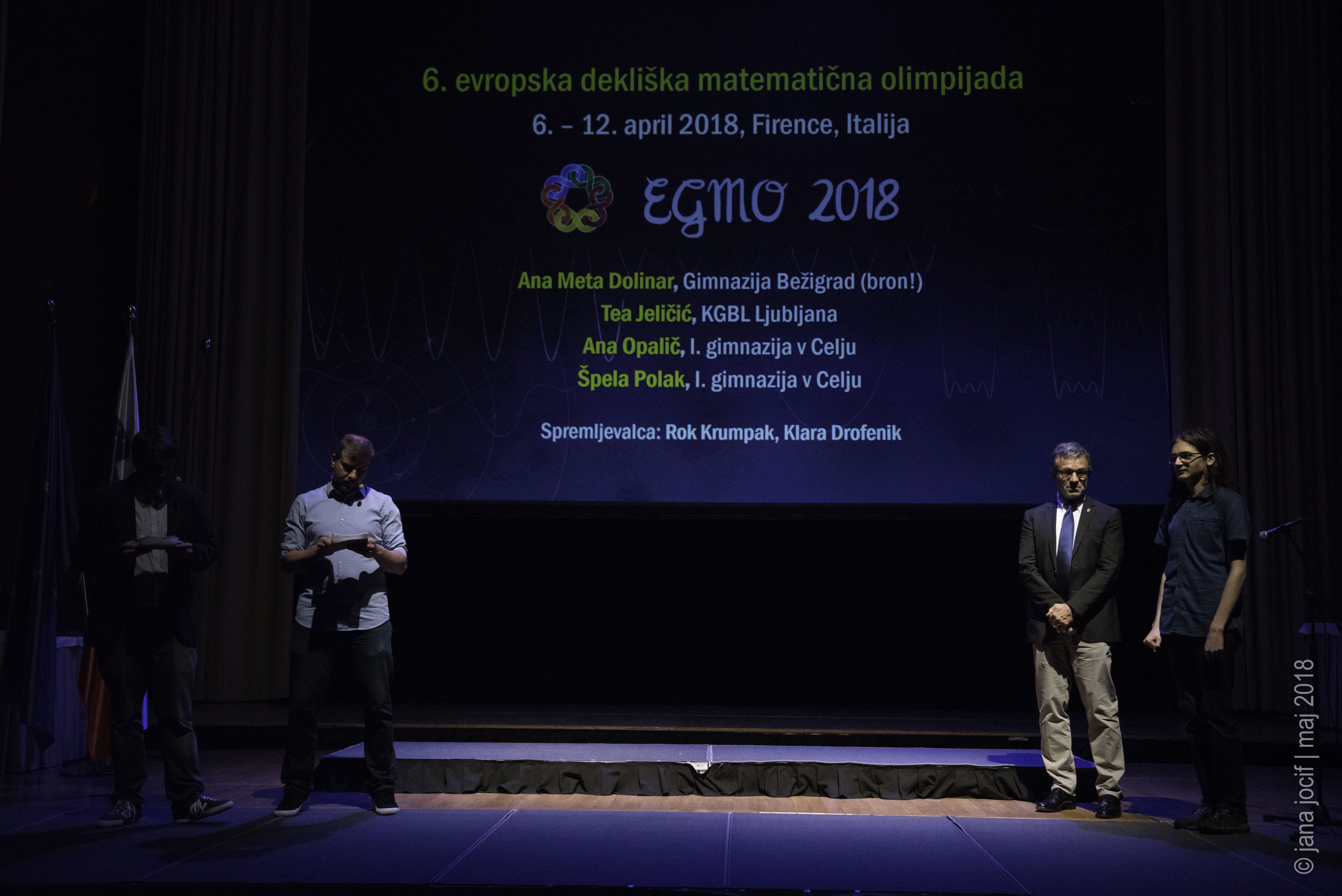 DMFA Slovenije dovoljuje shranitev slik v elektronski obliki in uporabo v individualne namene nagrajenih tekmovalcev. Uporaba posameznih slik na spletnih straneh šol ali v šolskih publikacijah je dovoljena, navesti je potrebno vir slik s povezavo na spletno stran DMFA Slovenije: <a href="http://www.dmfa.si/" title="DMFA Slovenije">www.dmfa.si</a>. Avtor slik: Jana Jocif.
