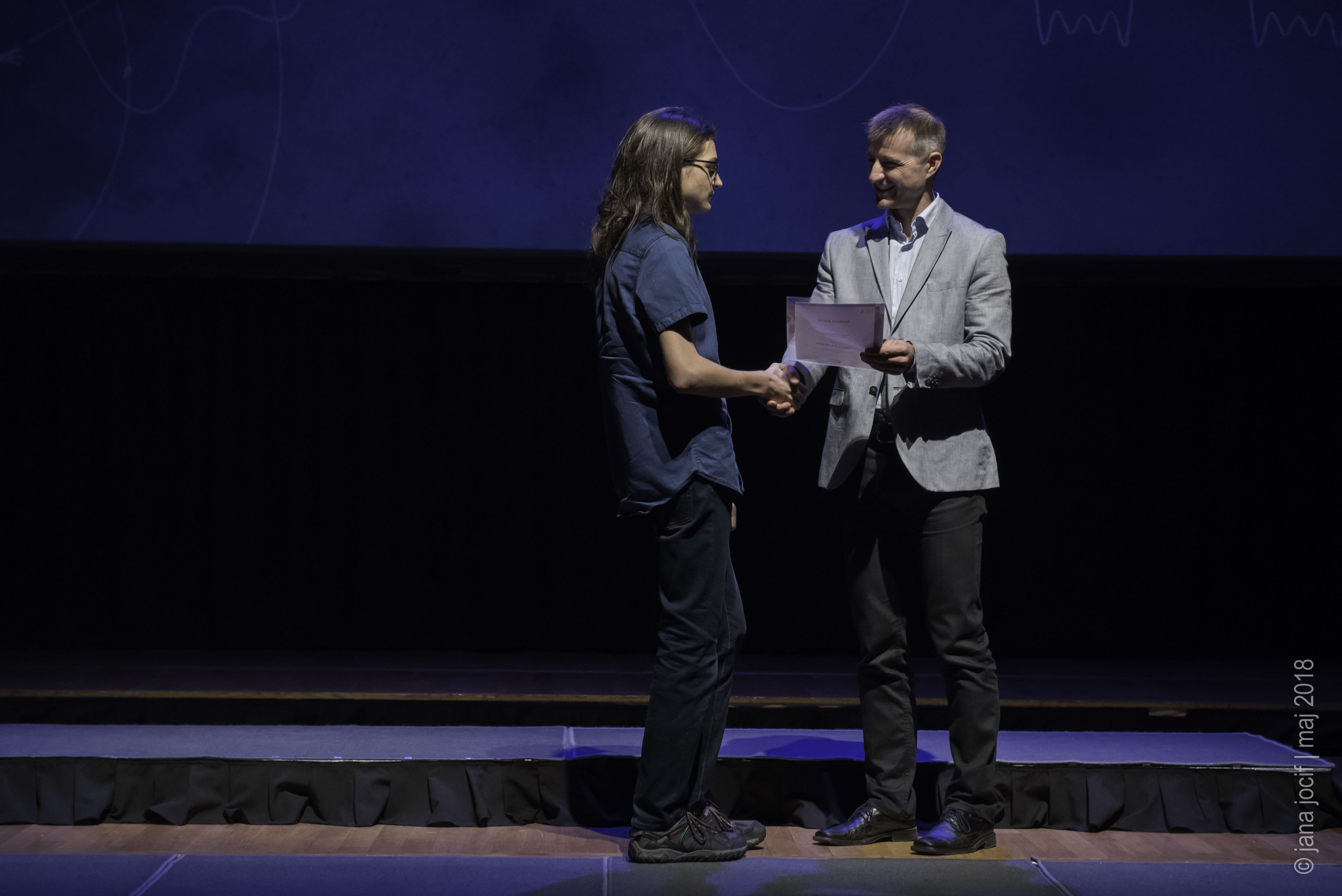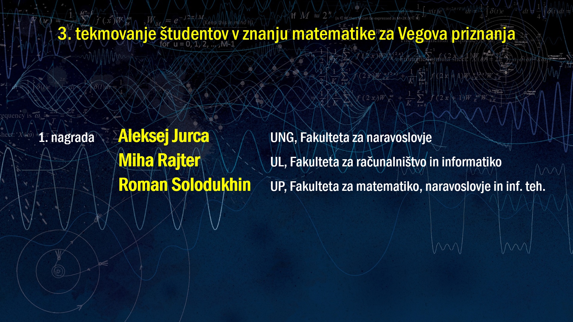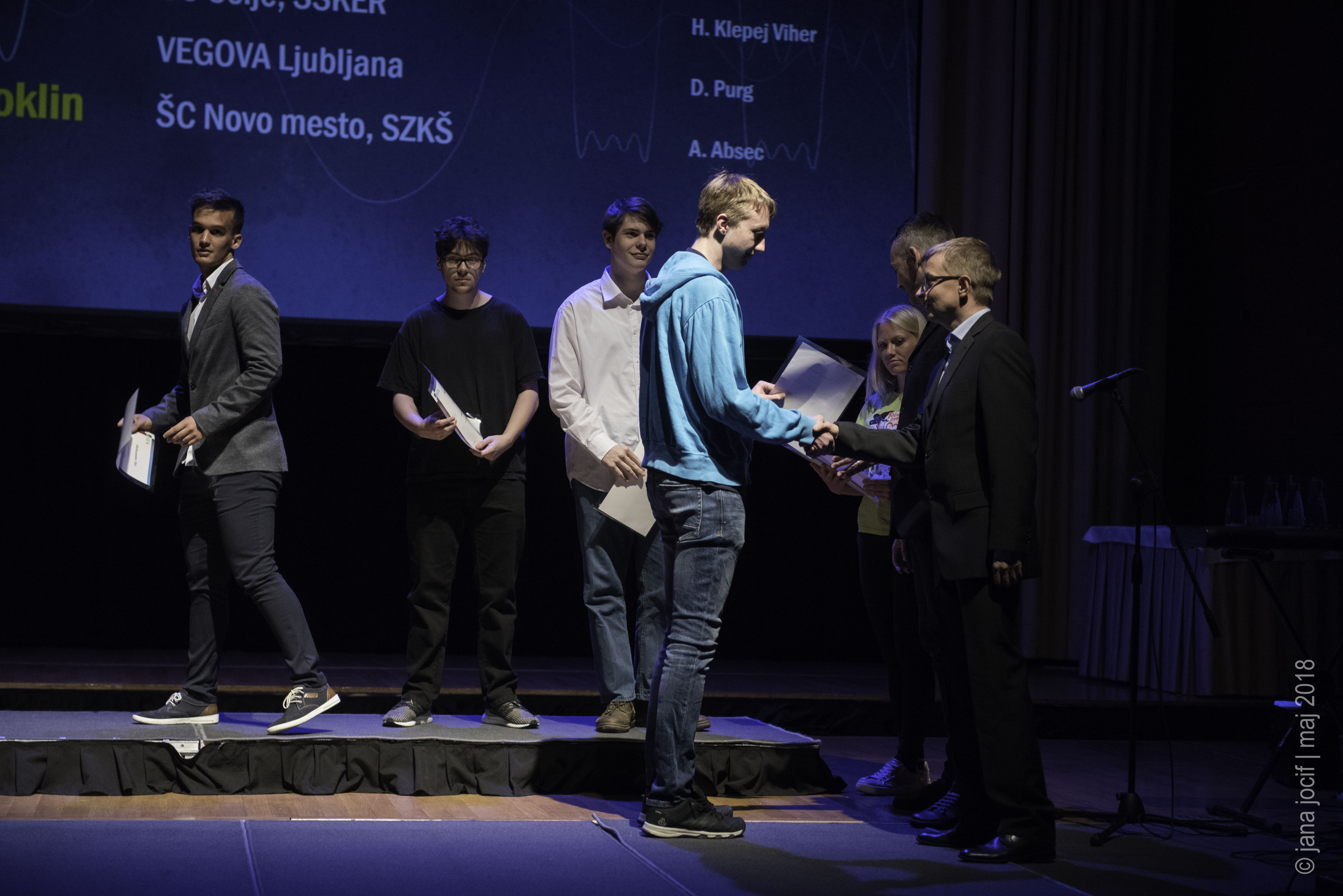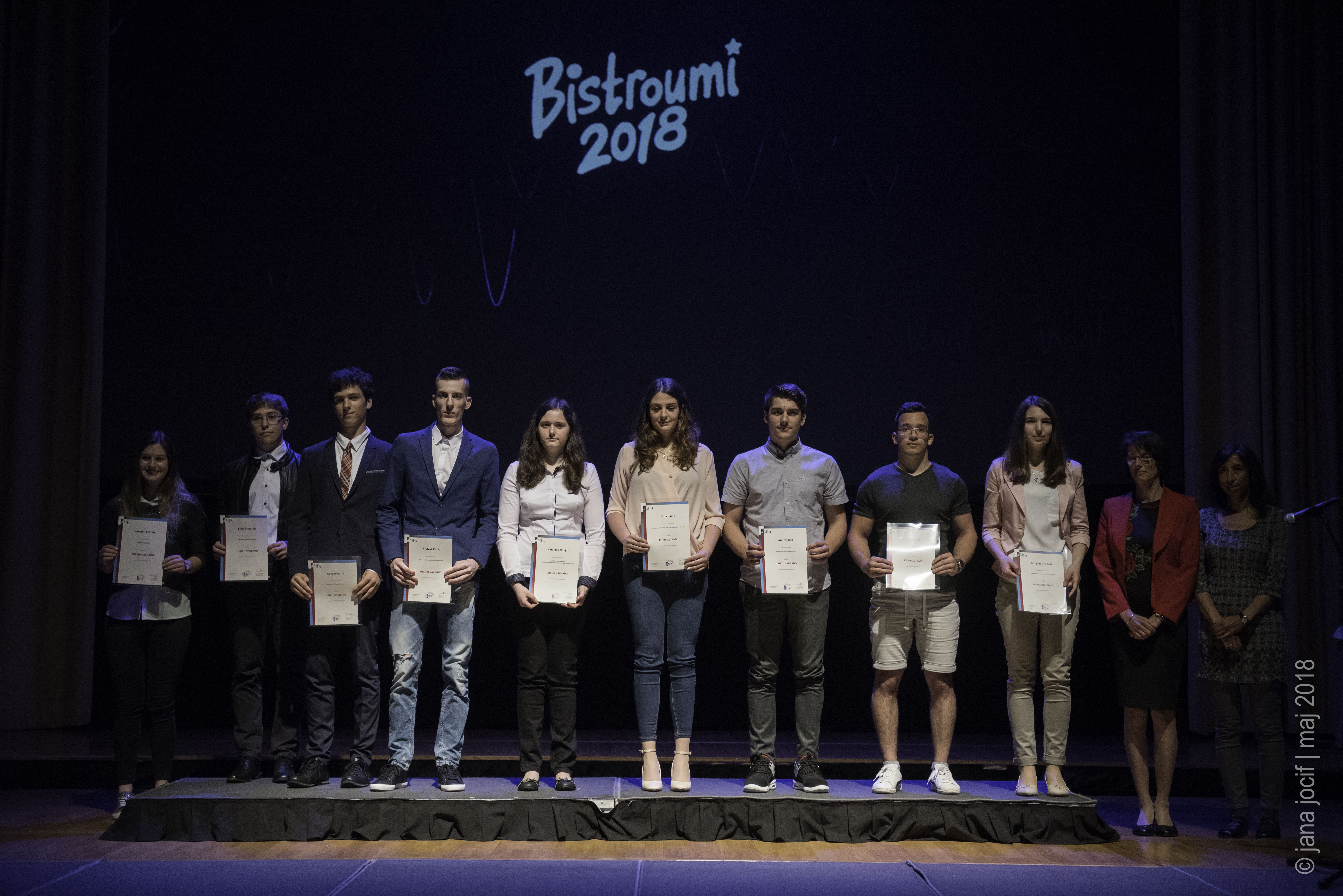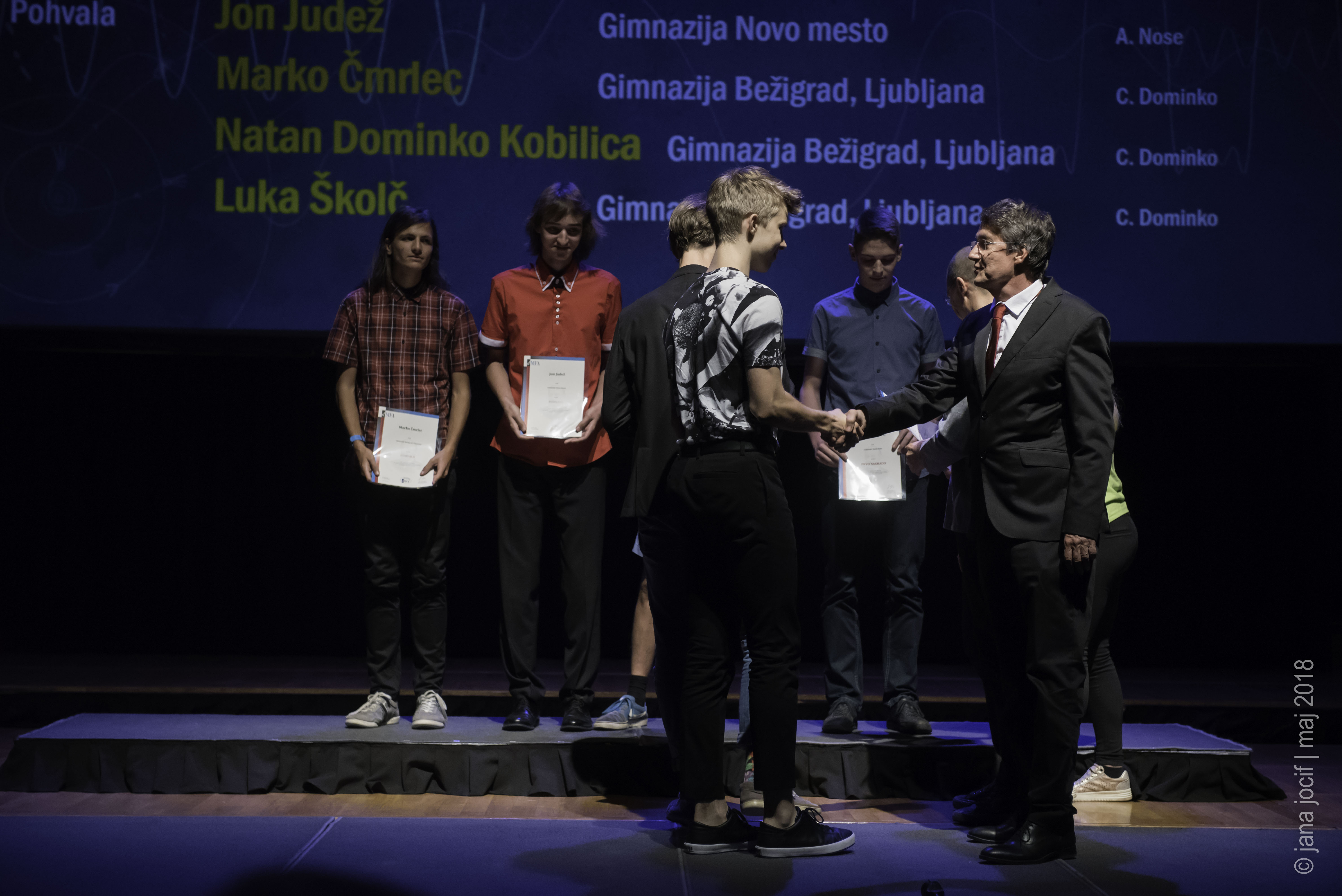 DMFA Slovenije dovoljuje shranitev slik v elektronski obliki in uporabo v individualne namene nagrajenih tekmovalcev. Uporaba posameznih slik na spletnih straneh šol ali v šolskih publikacijah je dovoljena, navesti je potrebno vir slik s povezavo na spletno stran DMFA Slovenije: <a href="http://www.dmfa.si/" title="DMFA Slovenije">www.dmfa.si</a>. Avtor slik: Jana Jocif.